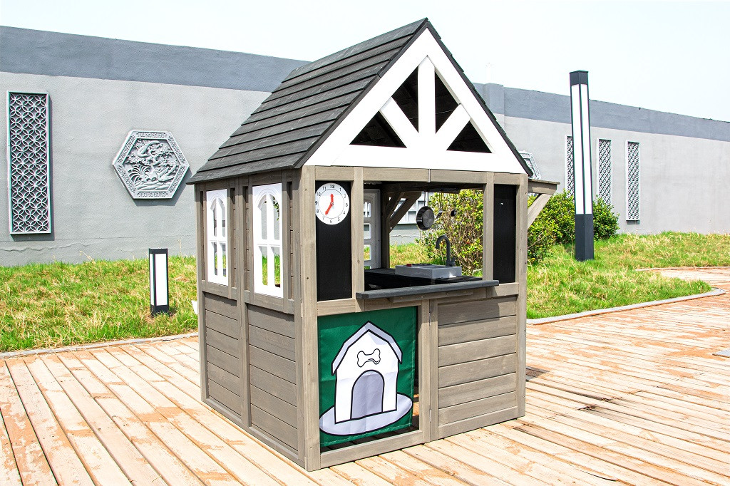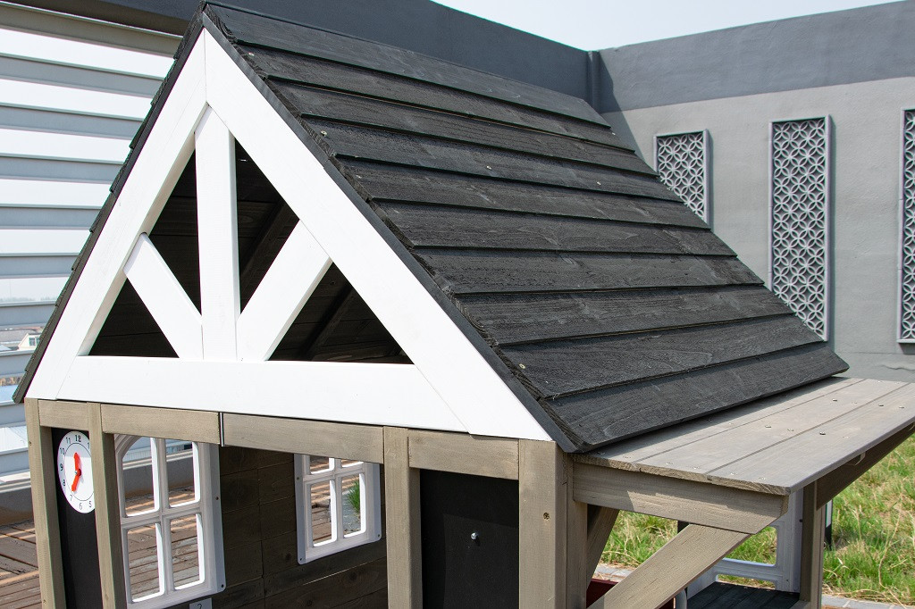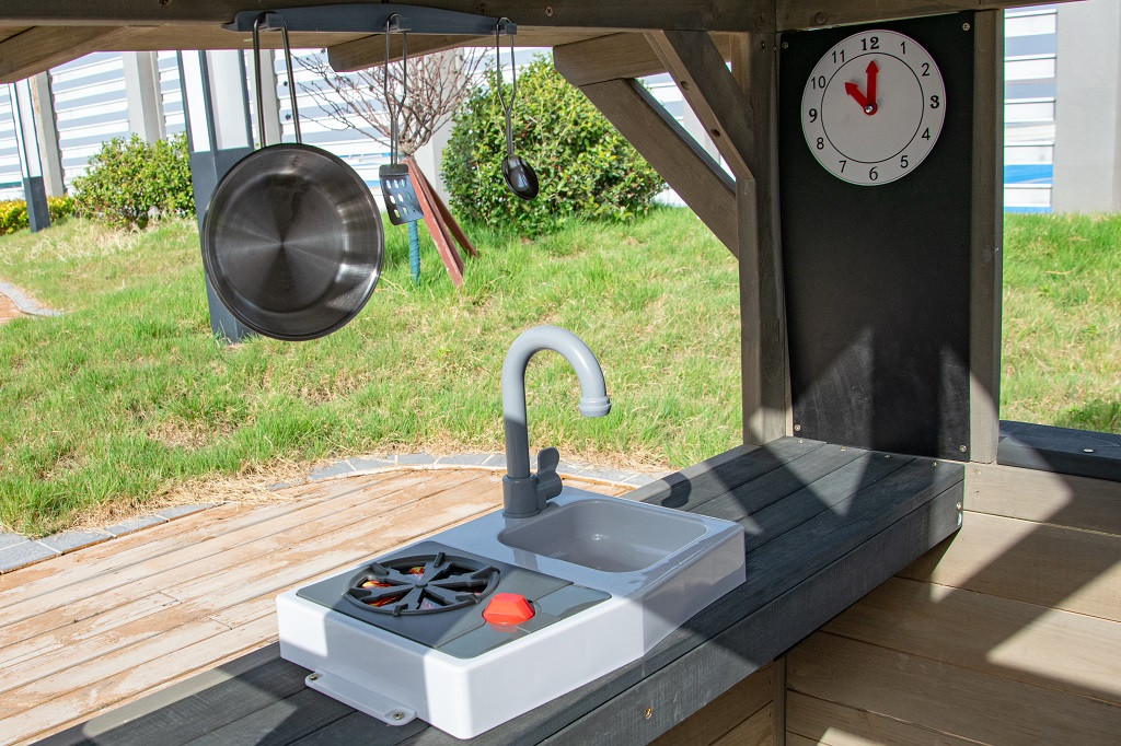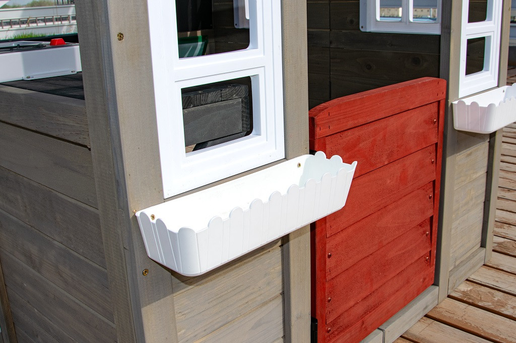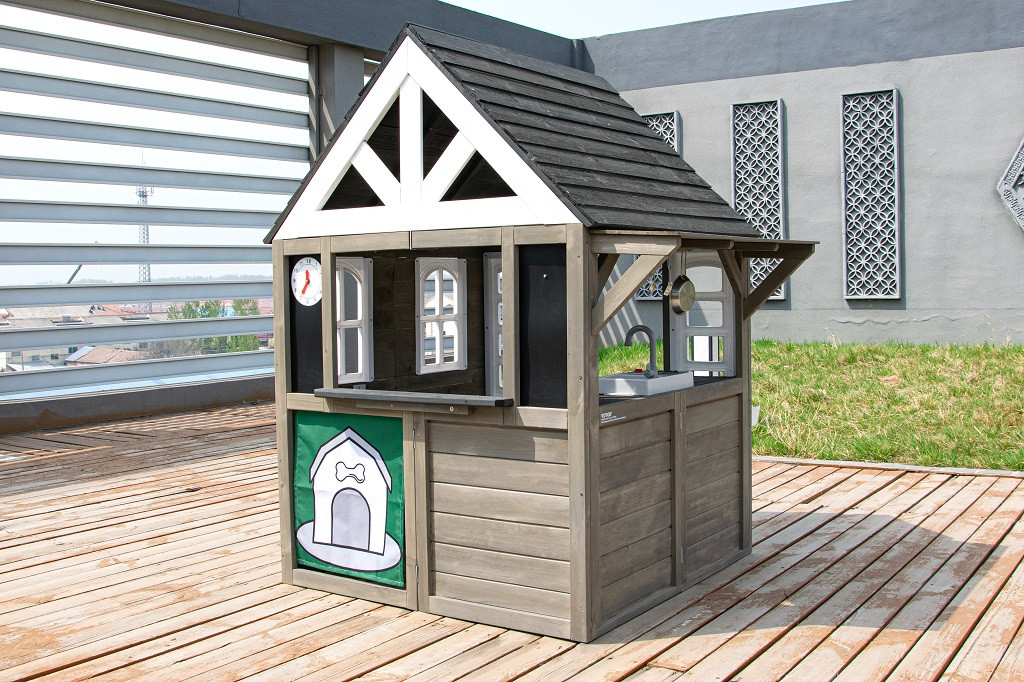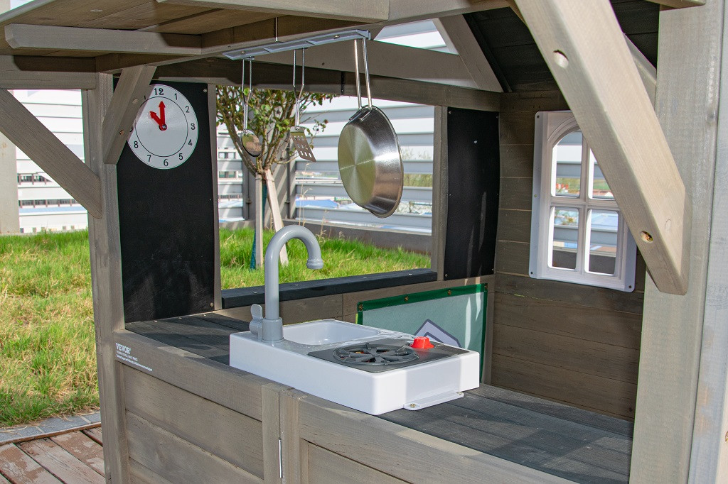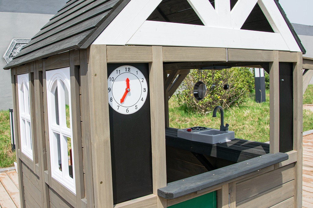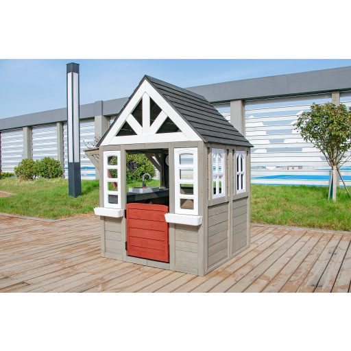 A Kerti házikó Vašek egy igazi kis álomotthon a gyerekeknek, ahol játszhatnak, főzőcskézhetnek és barátaikkal közösen tölthetik az időt. A házikóban található egy konyhasarok tűzhellyel, edényekkel és mosogatóval, valamint órával és virágtartókkal díszített bejárati ajtó. A nagy oldalsó ablak remek kilátást nyújt, de akár kis bolt vagy büfé is berendezhető benne. A részletes kidolgozás és a természetes fa színek barátságos hangulatot árasztanak. A házikó FSC® tanúsítvánnyal készült fából áll, így biztonságos és tartós. Kiválóan alkalmas szabadtéri játékhoz, fejleszti a szociális készségeket és a képzelőerőt.