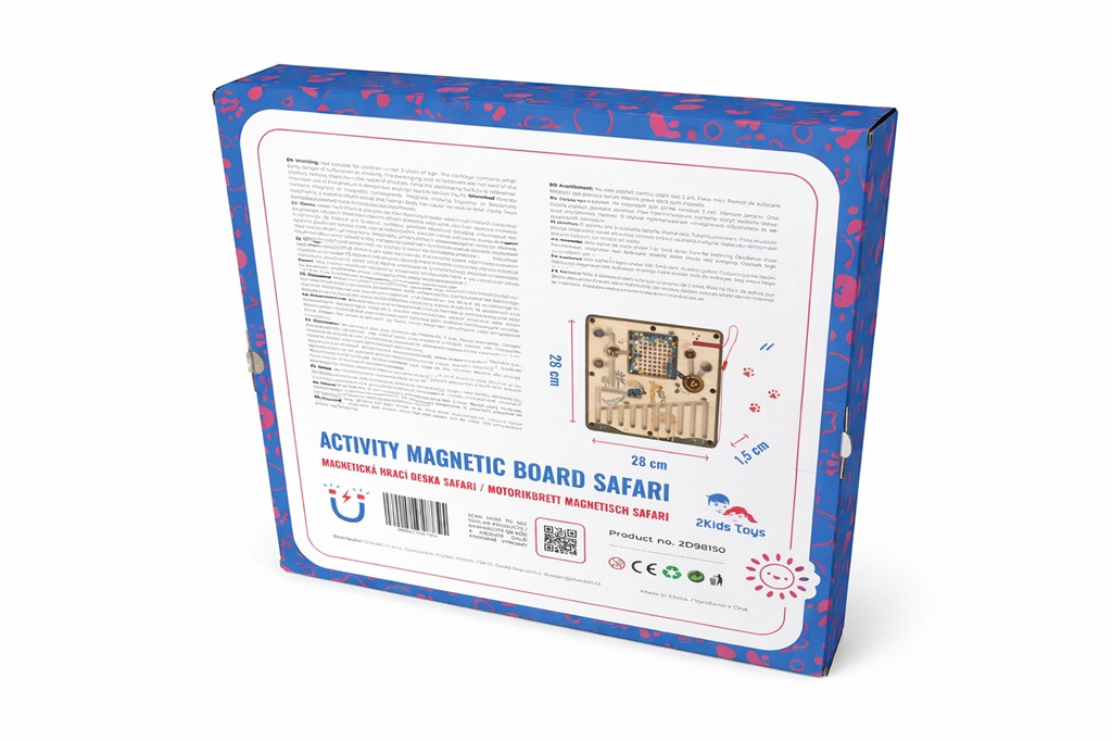 A 2Kids Toys Mágneses játéktábla: Szafari egy izgalmas és kreatív eszköz a gyerekek számára, amely serkenti a képzelőerőt és a kézügyességet. A masszív fából készült tábla 6 különböző mágneses elemet tartalmaz, amelyek segítségével a gyerekek saját szafari kalandokat hozhatnak létre. A kompakt méretnek köszönhetően könnyen hordozható, így ideális utazásokhoz vagy otthoni játékidőhöz is. A játék fejleszti a gyerekek kreativitását és finommotoros készségeit, miközben szórakoztatja őket.