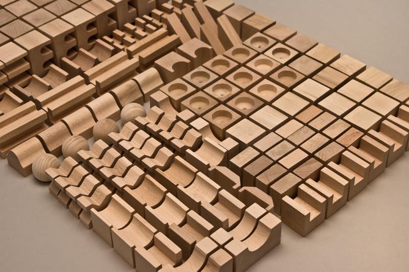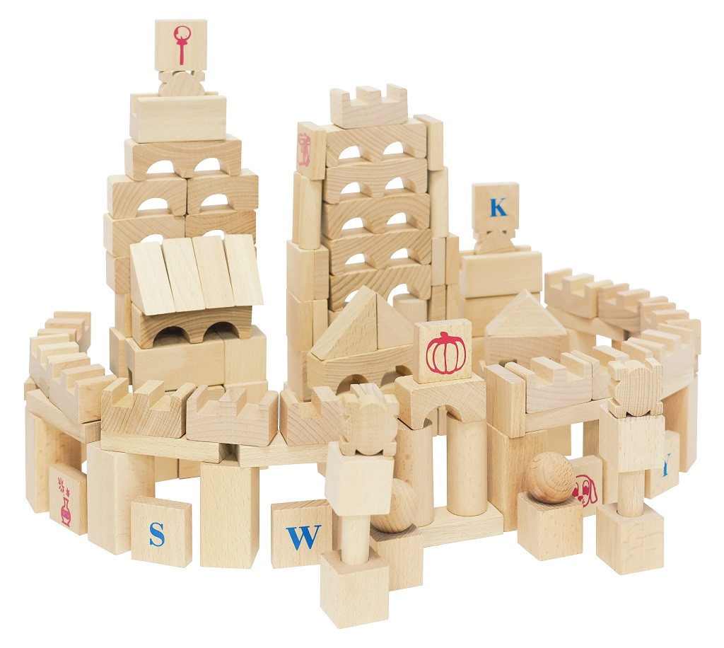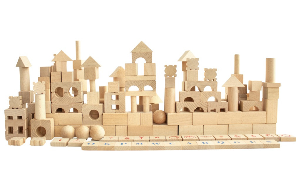 A sima felületű, természetes fa elemek kellemes tapintásúak, a különböző formák pedig fejlesztik a térlátást és a logikus gondolkodást. Néhány kockán betűk és jelek is segítik a játékos tanulást.
