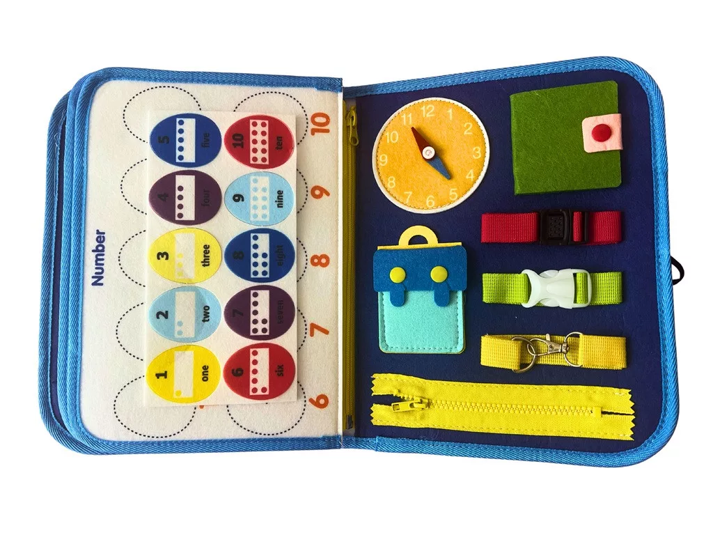 • Matató táblák: kapcsolók, zárak, cipzárak, gombok és más mindennapi elemekkel.
