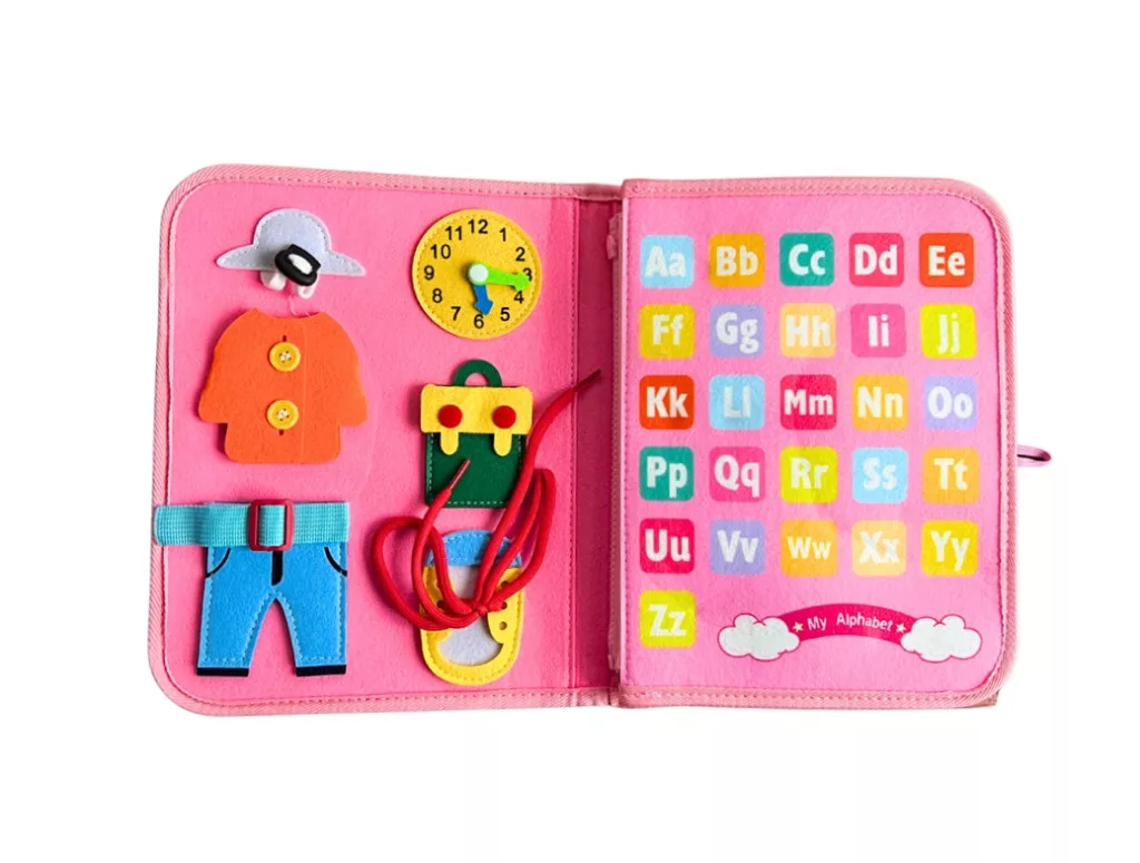 • Matató táblák: kapcsolók, zárak, cipzárak, gombok és más mindennapi elemekkel.