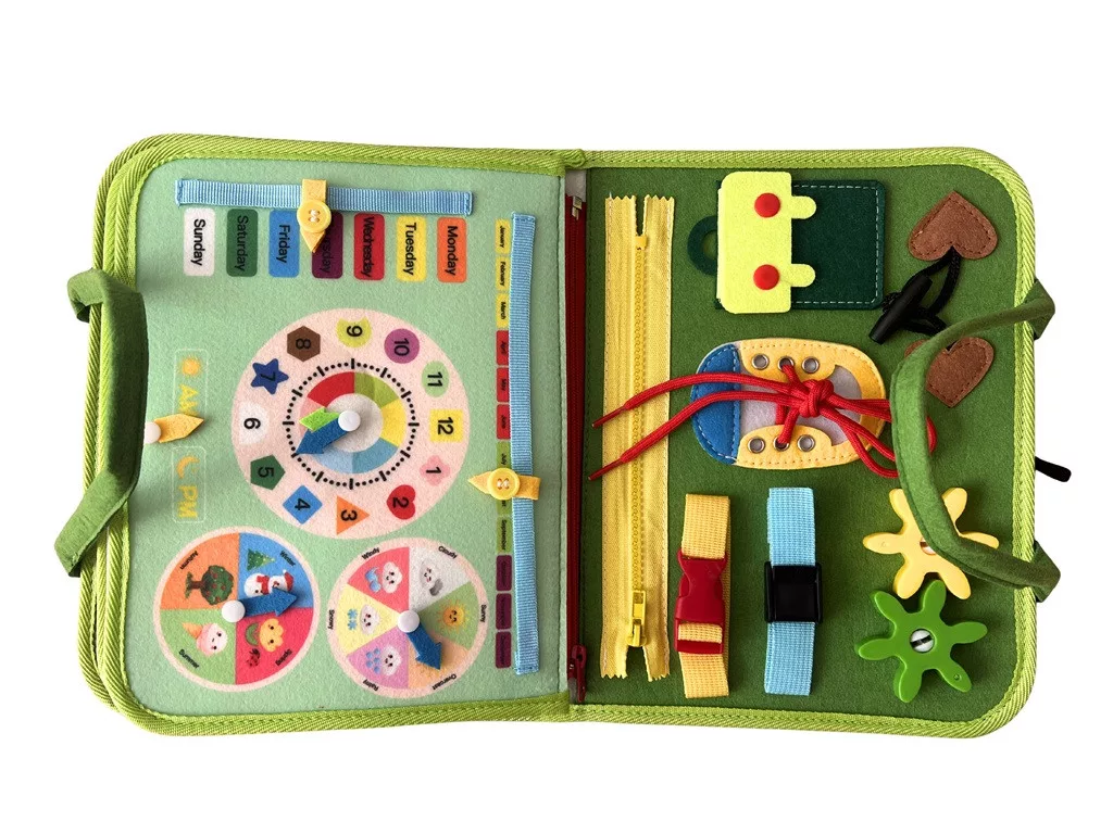 - Matató táblák: kapcsolók, zárak, cipzárak, gombok és más mindennapi elemekkel.