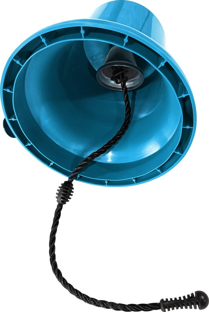 Ez a nagy méretű, vidám türkiz csengő igazi élményt nyújt a gyerekeknek a játék közben. A belsejében elrejtett kisebb csengő tompább hangot ad, így kíméli az érzékeny füleket. Fantáziadús szerepjátékokhoz kiváló kiegészítő, hiszen ösztönzi a gyerekeket a hajós, vonatos vagy akár kalózos kalandokra. Tartós, időjárásálló anyagból készült, a felszereléshez szükséges tartozékok pedig megtalálhatók a csomagban.