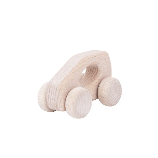A kemény bükkfából készült, igényesen megmunkált kerekeknek köszönhetően a kisautó szinte minden felületen gurítható – a nappali szőnyegén vagy akár az ágyon is.