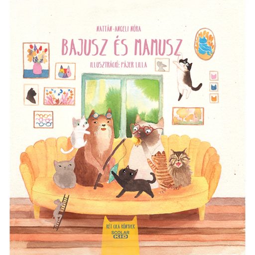 Cicaimádó gyerekeknek készült könyv, amelynek két szereplője Bajusz és Mamusz, a dereshátú cicapár.