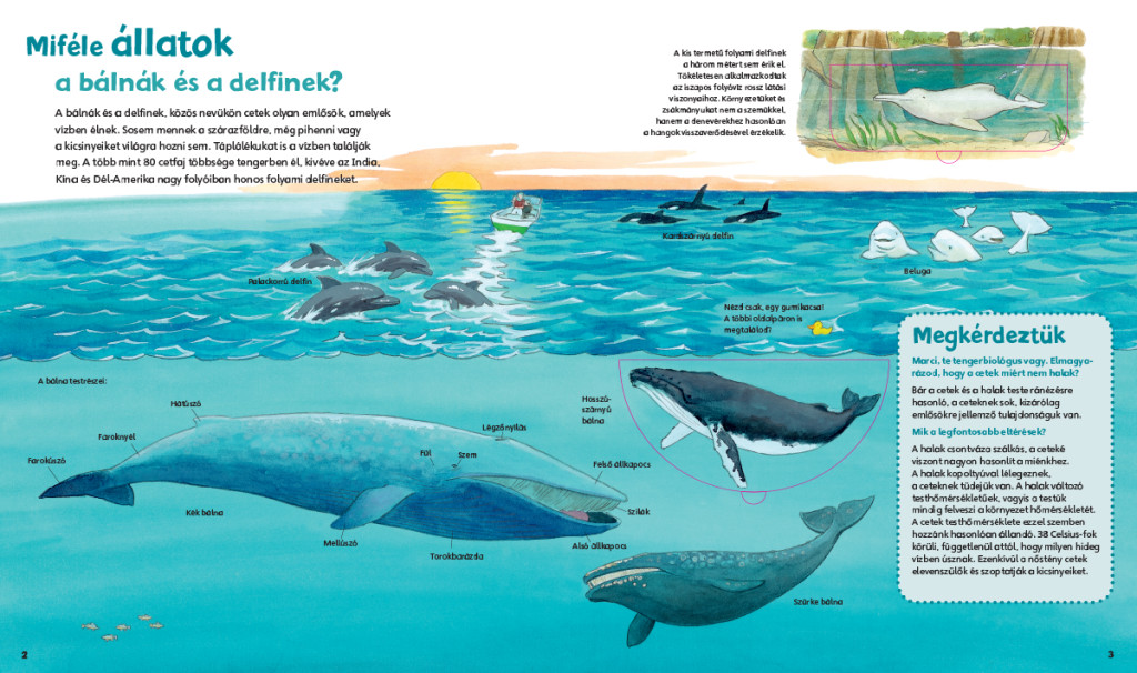 Fedezd fel a tengerek titokzatos lakóit a Mi MICSODA Junior sorozat interaktív kötetével! A könyv izgalmas kukucskáló ablakaival és lenyűgöző illusztrációival játékosan vezeti be a gyerekeket a bálnák és delfinek világába.
