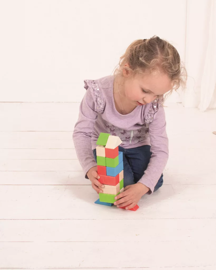 A Bigjigs Baby színes fa építőkocka készlete ideális választás a kisgyermekek számára, akik most kezdik felfedezni az építés örömét. A készlet különböző színű és formájú kockákból áll, amelyek kreatív játékra ösztönöznek. A kockák biztonságos, lekerekített élekkel és sarkokkal rendelkeznek, hogy megfeleljenek a legkisebbek igényeinek.