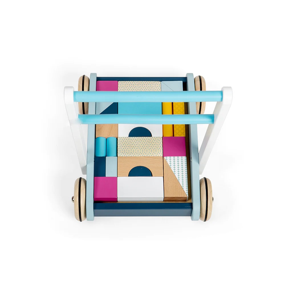 Táto chodúľka v pastelových farbách poteší každé dieťa. Je ideálna pre deti, ktoré ešte len začínajú chodiť. Je vyrobená z prvotriedneho udržateľného dreva s certifikáciou FSC® a maľovaná netoxickými farbami a lakmi. Chodúľka má pevnú drevenú konštrukciu a ľahko uchopiteľné madlo, vďaka ktorému sa deti cítia sebaisto av bezpečí. Zábava nekončí, keď už majú deti dosť prechádzok, môžu sa začať hrať a stavať. Súčasťou chodúľky sú kocky všetkých rôznych tvarov, farieb a veľkostí. Chodúľka je multifunkčná a ideálna pre rozvoj detskej rovnováhy, motoriky, koordinácie ruka-oko, zlepšenie znalostí tvarov a rozpoznávania farieb. Tvary majú veľkosť tak akurát, aby sa úhľadne zmestili do dreveného vozíka. Majú aj jedinečné vzory, ktoré upútajú pozornosť Vašich detí. Ideálna hračka pre metódu Montessori. Spĺňa aktuálne európske bezpečnostné normy. Hlavné vlastnosti: obsahuje 25 kociekmoderný farebný designpomáha v rozvoji rovnováhy a motoriky detírozvíja koordináciu ruky/okotrénuje rozpoznávanie farieb a tvarovideálna hračka pre metódu Montessorivyrobené z dreva s certifikátom FSCvhodné pre 12 mes.+