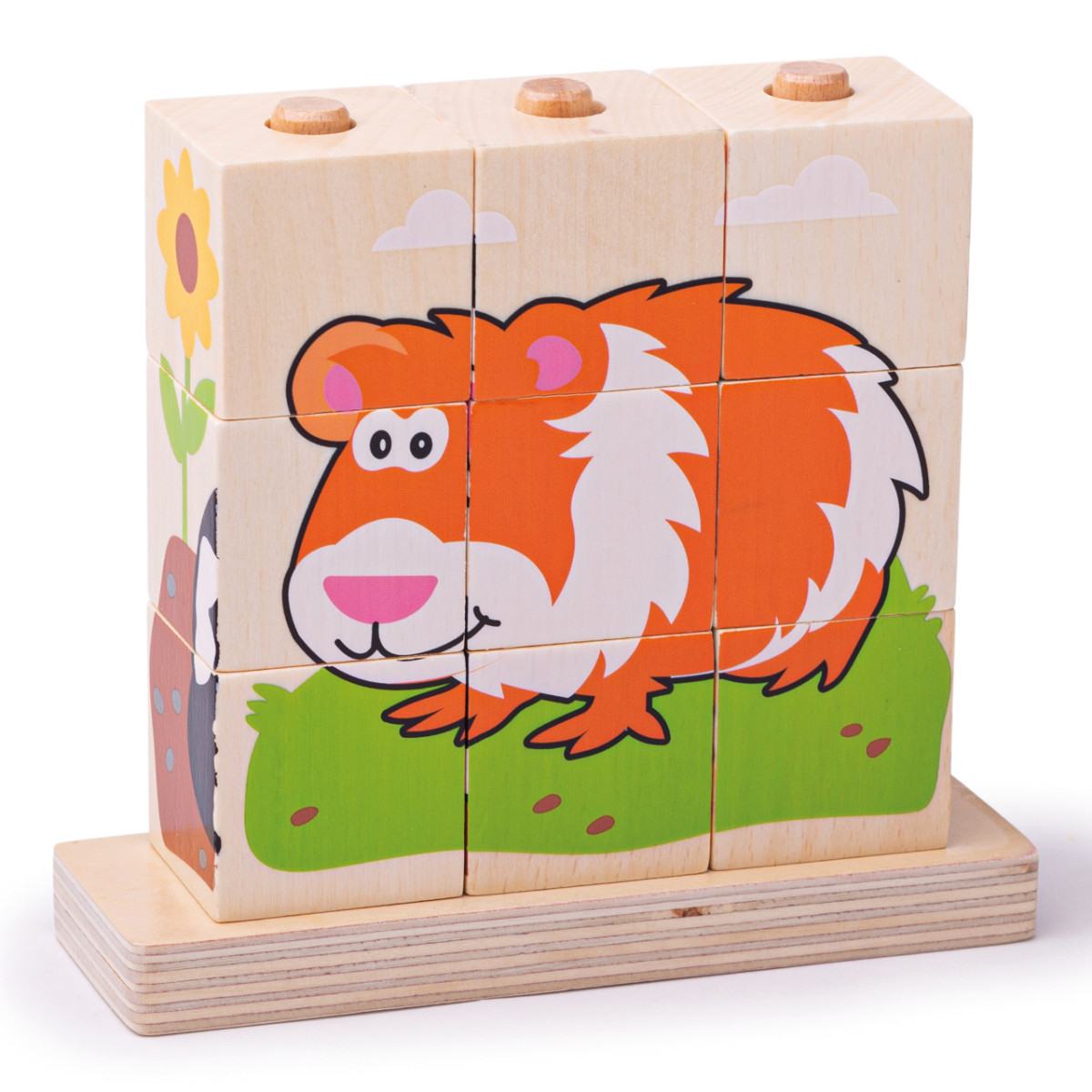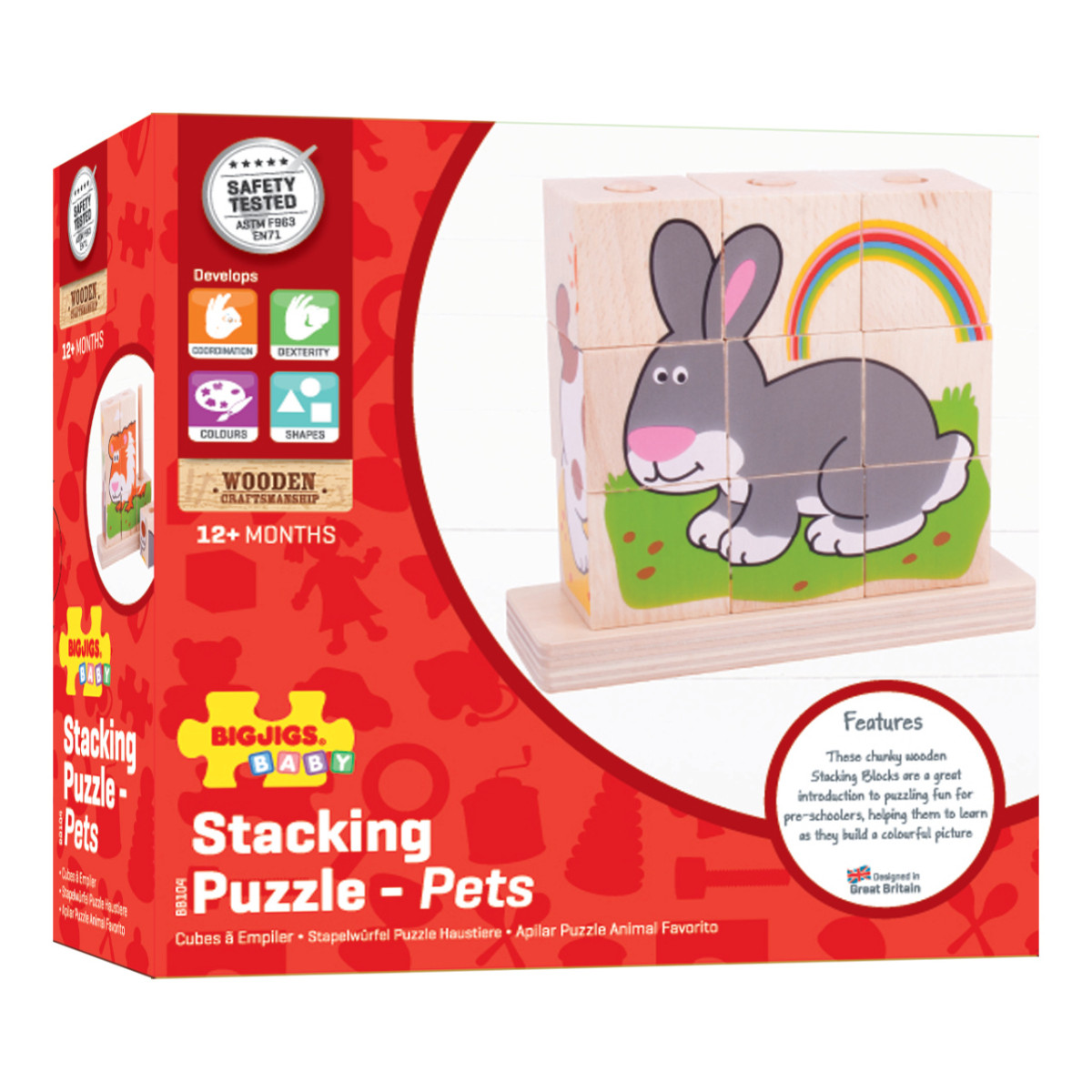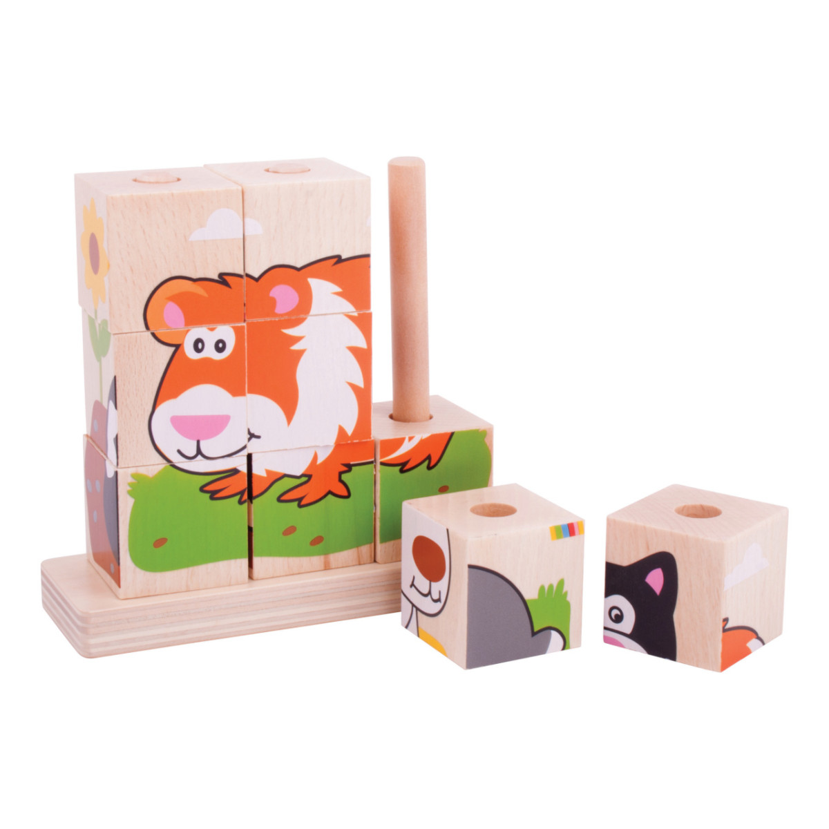A Bigjigs Baby - Rakosgató kockák állatok egy szórakoztató és oktató játék, amely kifejezetten a legkisebbek számára készült. A színes, állatmintás kockákkal a gyerekek fejleszthetik motorikus készségeiket és kreativitásukat. Az 5 cm-es kockák könnyen kezelhetők kis kezek számára, így ideális választás 12 hónapos kortól.