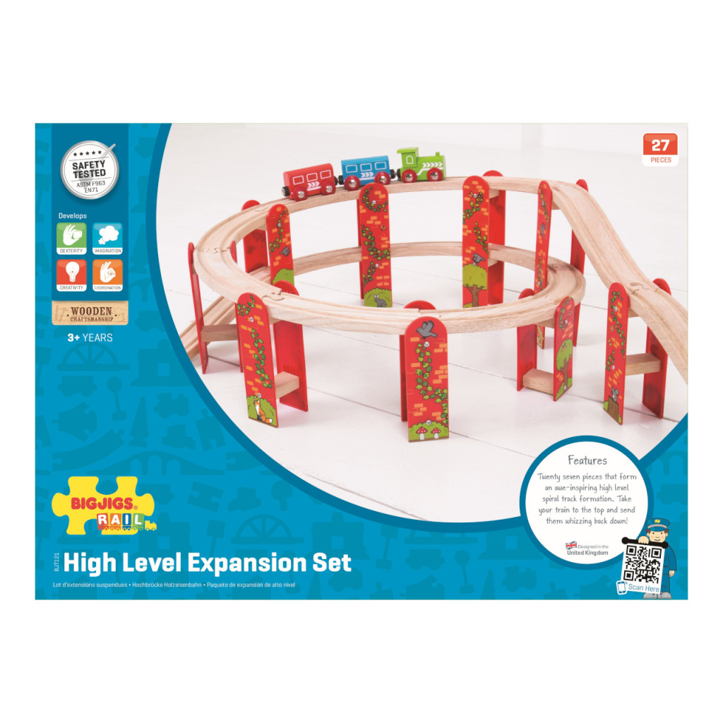 Ez a többszintes sínkészlet stabil szerkezetének köszönhetően könnyen mozgatható, anélkül hogy szétesne. A műanyag oszlopok és pontos illesztések biztosítják a tartósságot és az egyszerű összeállítást. A készlet nem tartalmaz vonatokat, így szabadon kombinálható más elemekkel. Kiváló minőségű, természetes faanyagból készült, biztonságos és tartós. Kompatibilis minden Bigjigs Rail és más fa sínrendszerrel. A játék során fejlődik a kreativitás, kézügyesség és koordináció. Tökéletes választás, ha egy látványos, emelt pályát szeretnél építeni.
