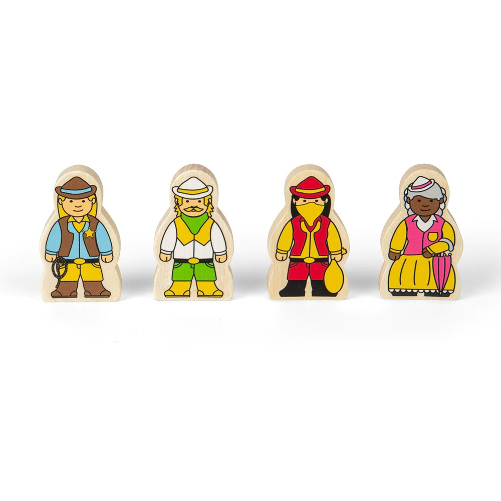 Ez a 62 darabos vadnyugati készlet egy igazi kalandvilágot teremt a gyerekszobában. A vonat kanyargós pályán halad kocsikkal, lovakkal, ranccsal és egy aranybányás alagúttal. A készlet tartalmaz cowboyokat, házakat, kaktuszokat és egy steppefutót is. FSC® tanúsítvánnyal rendelkező faanyagból készült, biztonságos és tartós. Kompatibilis minden Bigjigs Rail és más fa sínrendszerrel. A játék során fejlődik a kreativitás, kézügyesség és koordináció. Tökéletes választás a western rajongóknak.