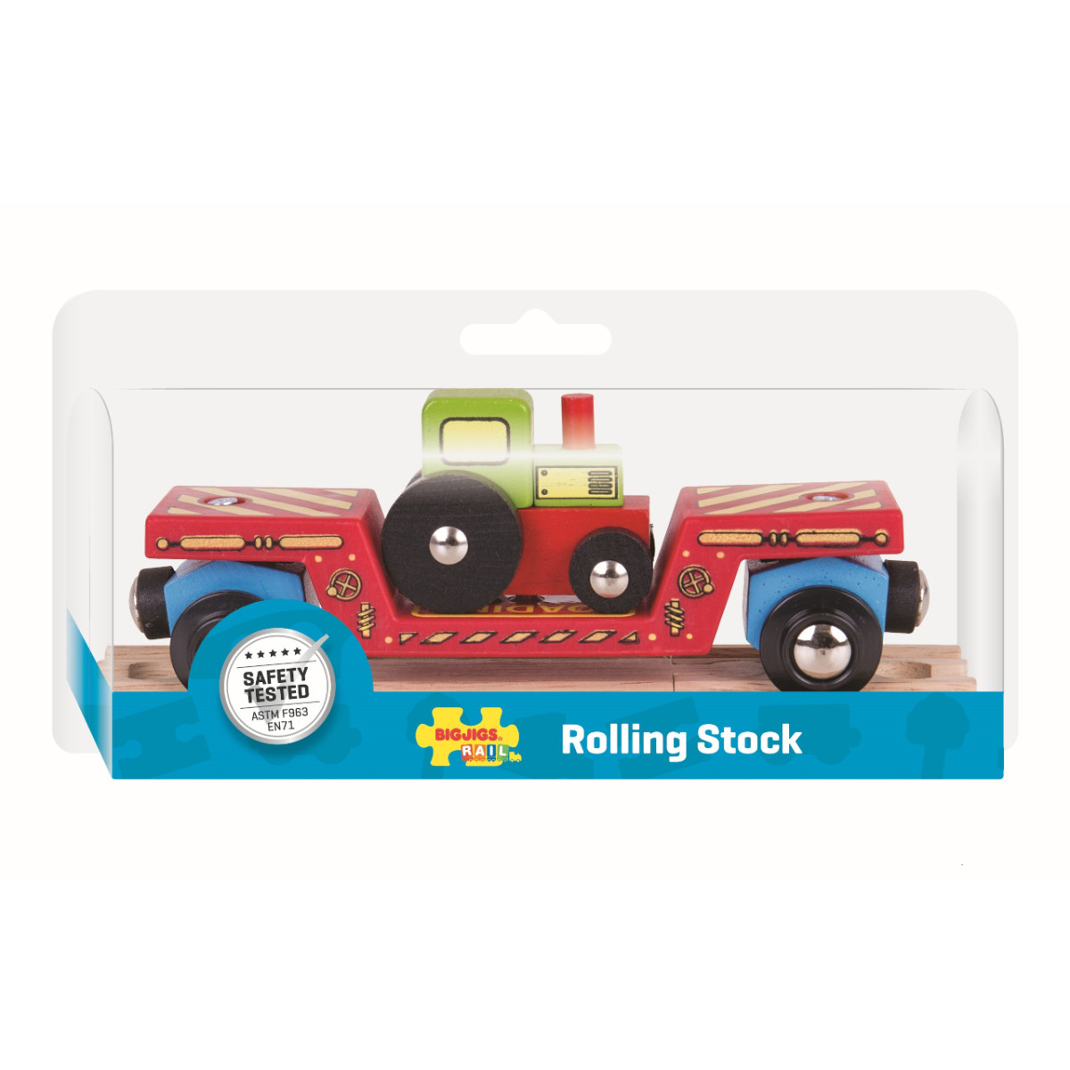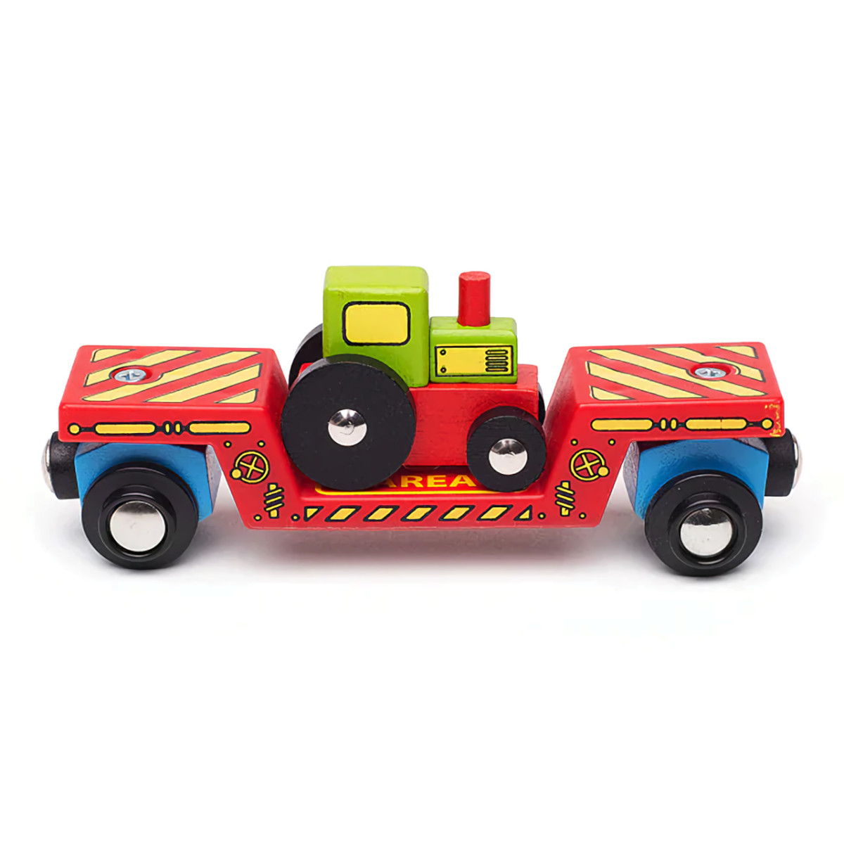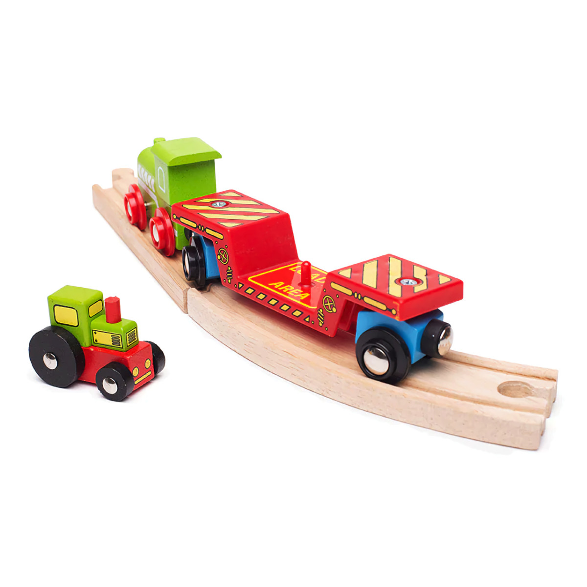Bigjigs Rail - Vagon traktorral + 2 sín - JátékManufaktúra
