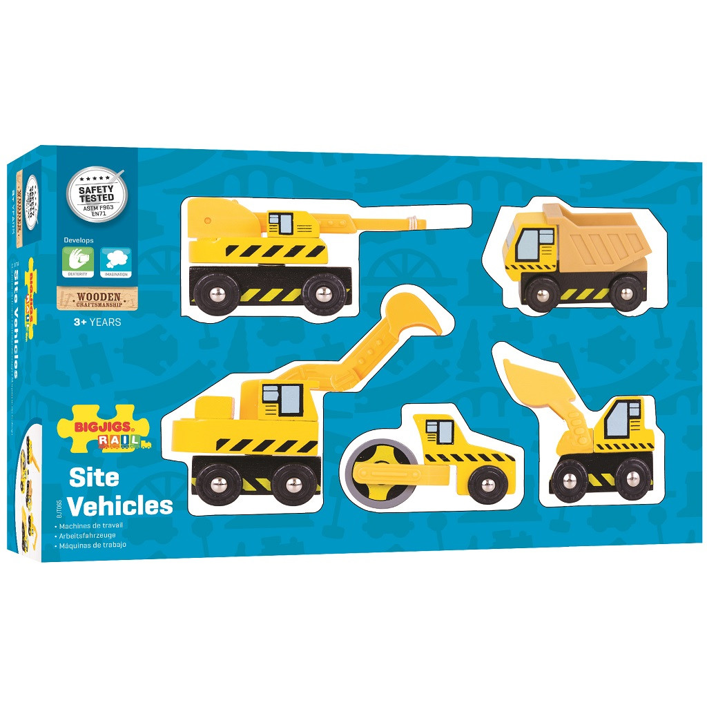 Ez a készlet különféle építőgépeket tartalmaz, amelyek tökéletesen illenek bármely fa vonatpályához. A csomag tartalma megfelel a képen látható összeállításnak. A gyerekek eljátszhatják az építkezés különböző jeleneteit, miközben fejlődik a kézügyességük. Kiváló minőségű, természetes faanyagból készült, biztonságos és tartós. Kompatibilis minden Bigjigs Rail és más fa sínrendszerrel. Egyszerű, mégis sokoldalú kiegészítő, amely új funkciót ad a játékhoz.