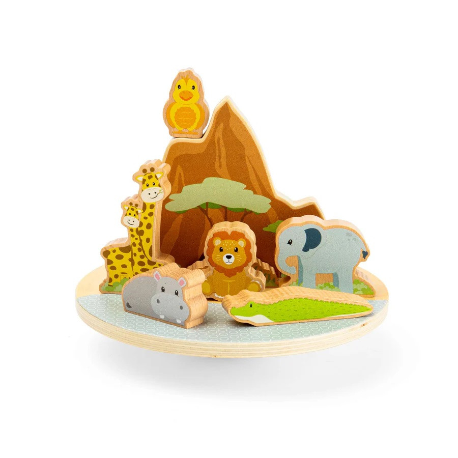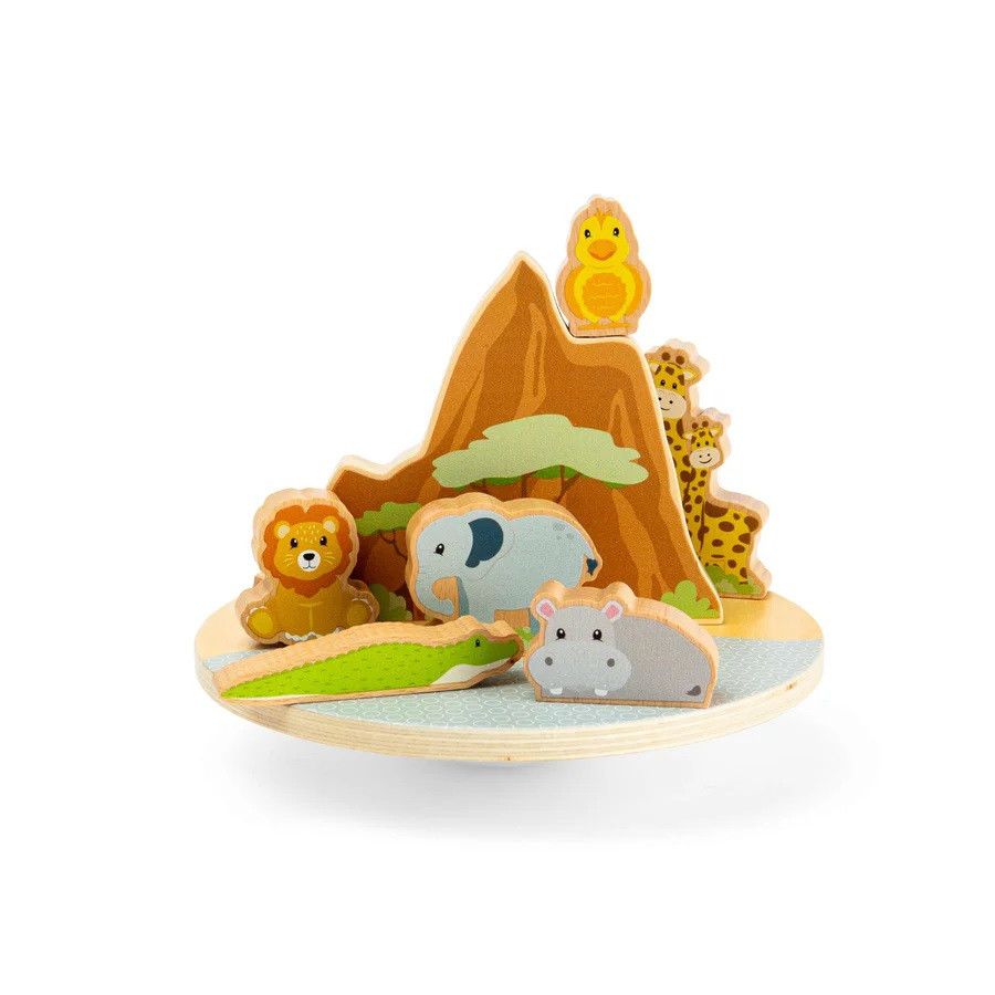 Pohupujte sa a balansujte s divokými zvieratami na balančnej doske Džungle. Táto drevená balančná hračka obsahuje roztomilé zvieratká, ktoré deti skladajú na základňu a užívajú si s nimi veľa zábavy. Deti môžu so žirafou a ďalšími kamarátmi vymýšľať nekonečné príbehy a posilňovať svoju kreativitu pri aranžovaní masívnych drevených figúrok. Sledujte, ako sa vaša ratolesť snaží nájsť rovnováhu pre leva, krokodíla, slona, ​​hrocha a žirafu na jemne sa hojdajúcom podstavci. Táto hračka, vyrobená z certifikovaného dreva FSC®, je ideálna pre rozvoj koordinácie ruka-oko prostredníctvom hry. Každé zakymácanie podporuje učenie a rozvoj dieťaťa, čo z tejto sady robí vynikajúci nástroj na tréning jemnej motoriky a logického myslenia. Elegantný škandinávsky dizajn navyše zaručuje, že hračka bude krásnym doplnkom v každej modernej detskej izbičke. Sada je testovaná podľa najnovších bezpečnostných noriem a dodáva sa v 100% recyklovateľnom obale bez obsahu plastov. Hlavné vlastnosti: drevená balančná doska s motívmi zvieratobsahuje 10 robustných herných dielikov (vrátane leva, slona a žirafy)učia trpezlivosti a vnímanie rovnováhyrozvíja jemnú motoriku, sústredenie aj kreatívne myslenievyrobené z FSC® certifikovaného drevaúplne bezplastové obalyvhodné pre deti od 18 mesiacov   Značka a certifikát FSC® (Forest Stewardship Council) zaručuje, že drevo, z ktorého bol výrobok vyrobený, nebolo vyťažené nelegálne a pochádza z lesov obhospodarovaných šetrným či prírode blízkym spôsobom, v ktorom sú dodržiavané prísne environmentálne a sociálne požiadavky. Značka FSC® na výrobku znamená, že svojim nákupom pomáhate chrániť lesy a podporujete šetrné, zodpovedné či prírode blízke hospodárenie, vďaka ktorému sú naše lesy stabilnejšie, zdravšie, majú prirodzenú druhovú skladbu a lepšie odolávajú negatívnym následkom klimatických zmien.