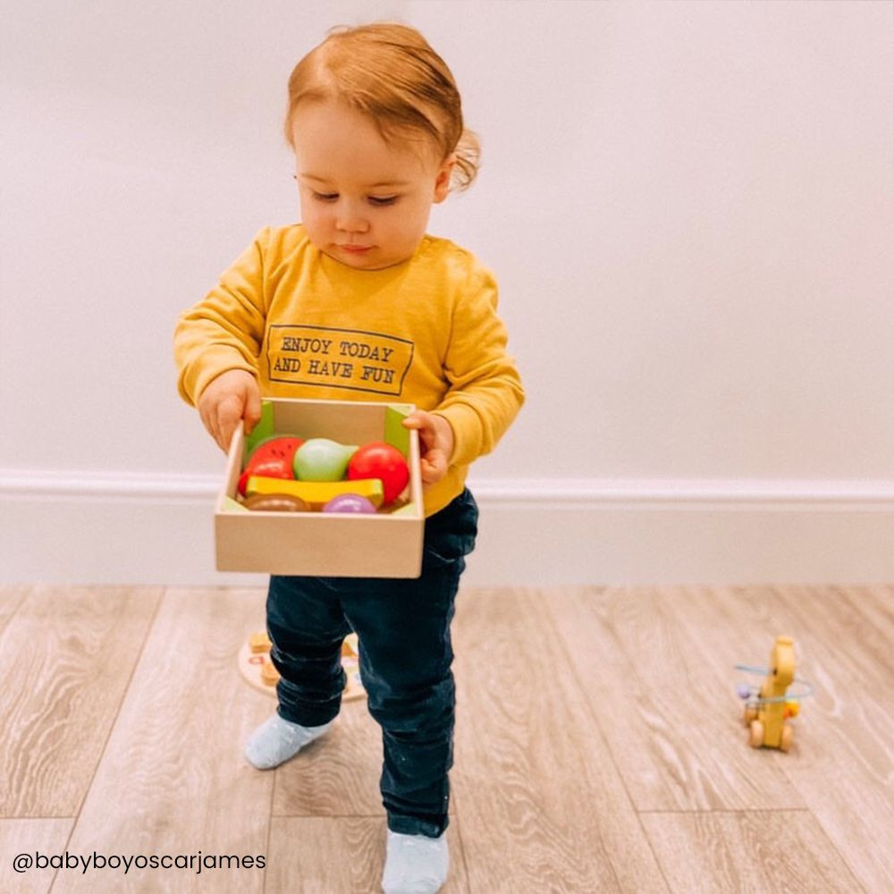 A Bigjigs Toys Doboz gyümölcsökkel tökéletes kiegészítő a kicsik játékkonyhájába vagy boltos szerepjátékához. Ez a gyönyörűen megmunkált fa készlet tartalmaz különféle színes gyümölcsöket, amelyekkel a gyermekek szórakoztató módon ismerkedhetnek meg az egészséges táplálkozás alapjaival. Alkalmas 18 hónapos kortól, így a legkisebbek is biztonságosan élvezhetik a játékot.