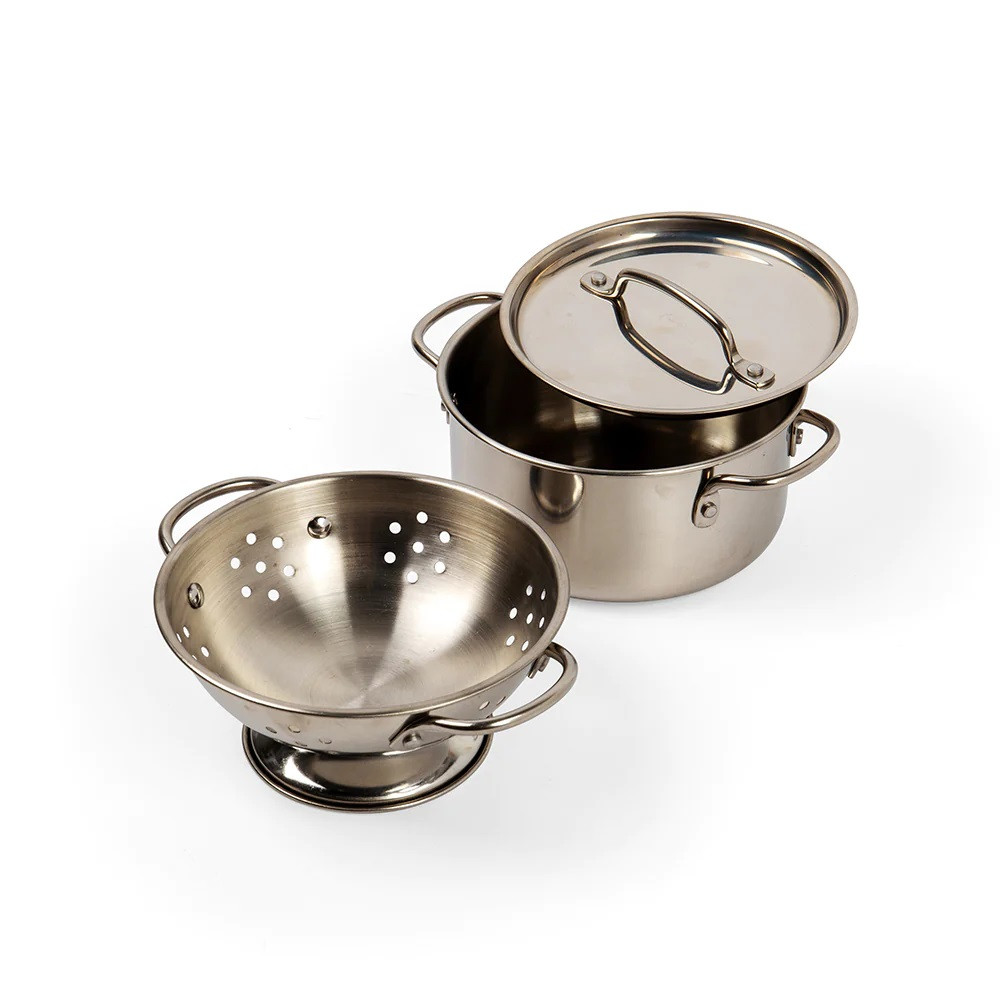 A Bigjigs Toys edénykészlet állvánnyal, 8 darabos szettje tökéletes kiegészítő a kis szakácsok számára. A készlet tartós fémből készült, amely garantálja a hosszú élettartamot és a biztonságos játékot. Az állvány praktikus tárolást biztosít, így mindig rendet tarthat a játék konyhában. Ajánlott 2 éves kortól.