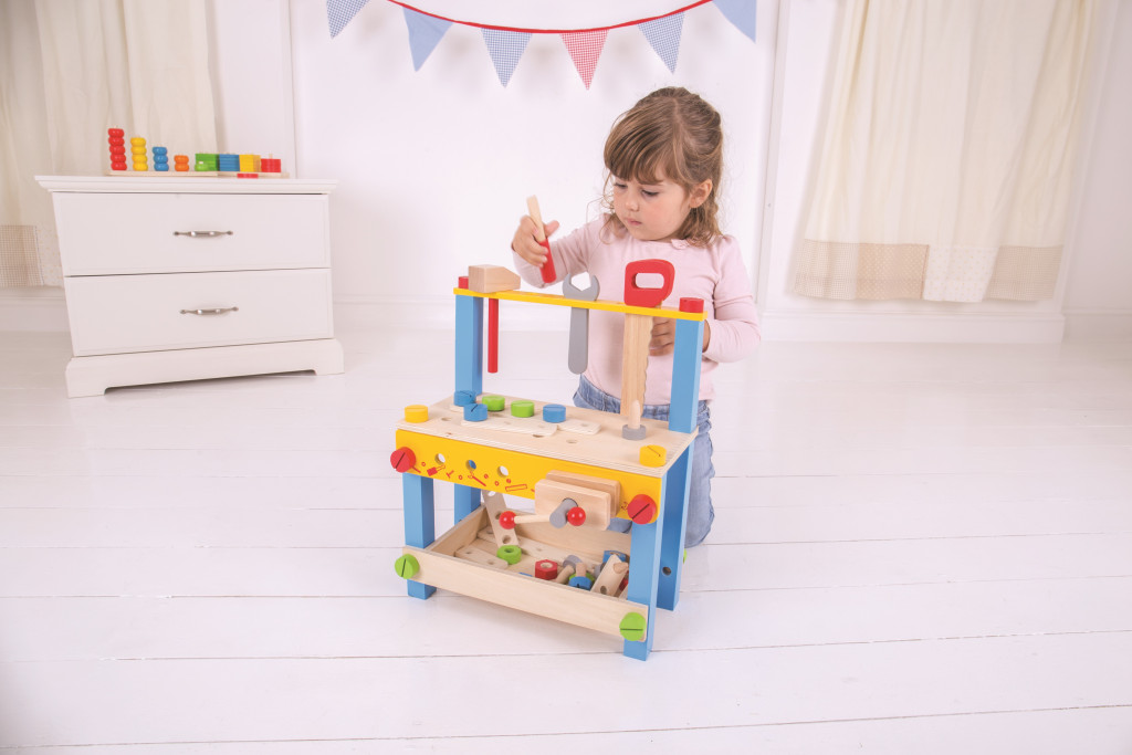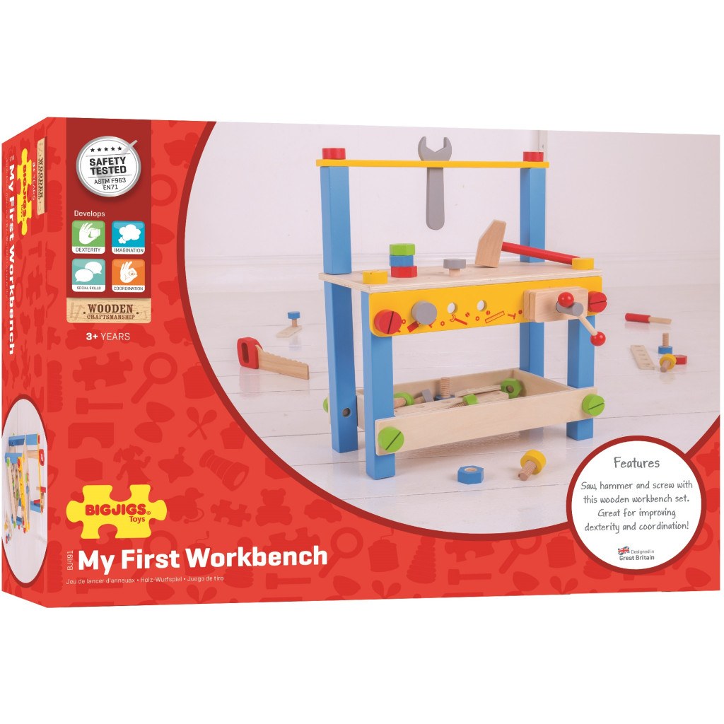 A Bigjigs Toys - Első munkapadom egy tökéletes kezdet minden kis barkácsmester számára. Ez a fából készült, strapabíró munkapad 3 éves kortól ajánlott, és segít fejleszteni a kézügyességet és a kreativitást. Mérete 36,5x49,5x26 cm, így ideális méretű a gyerekszobákba.