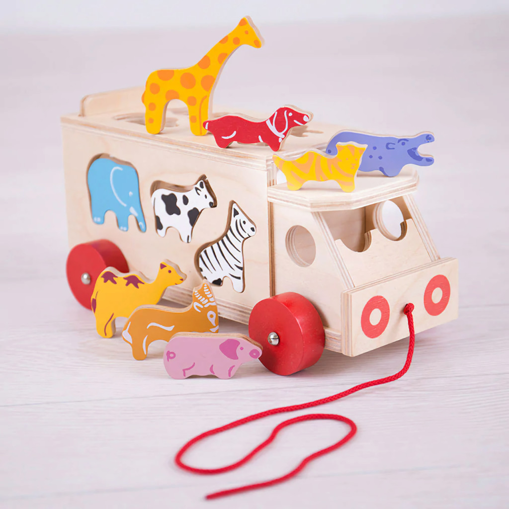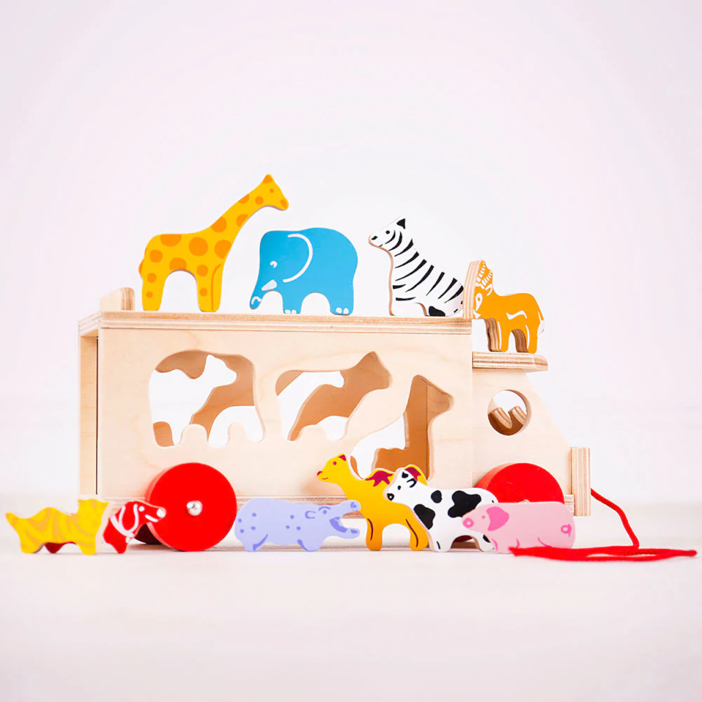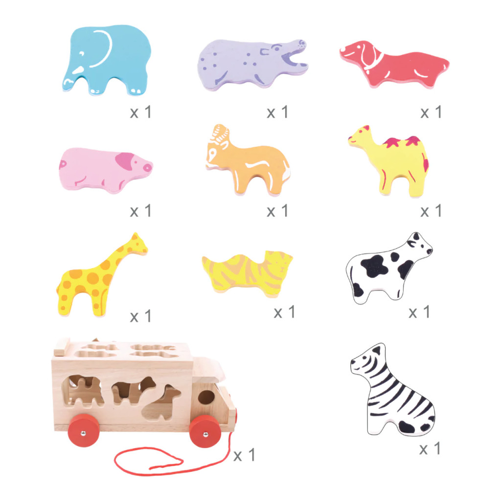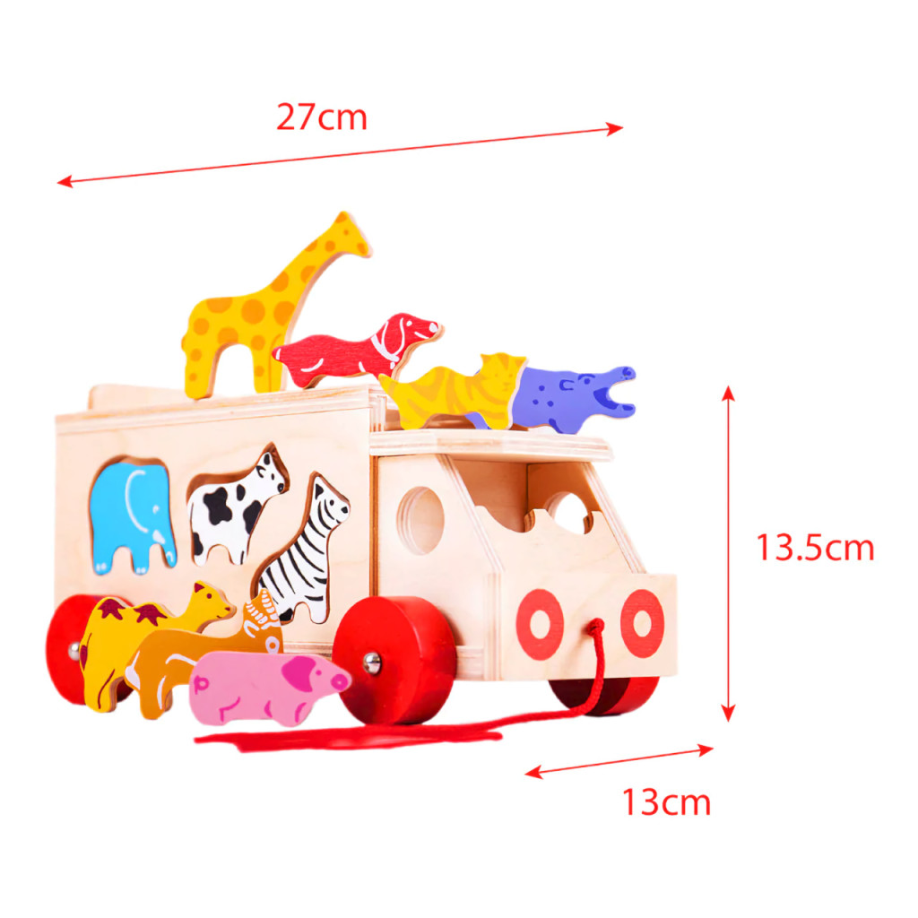 A Bigjigs Toys Fa autó állatokkal tökéletes választás a kisgyermekek kreatív és fejlesztő játékához. A jármű tartós fából készült, és 11 különböző állatfigurát tartalmaz, amelyek segítenek a gyerekeknek a formák és színek felismerésében. A játék 3 éves kortól ajánlott, és ideális méretekkel rendelkezik, hogy a kis kezek könnyedén kezelhessék.