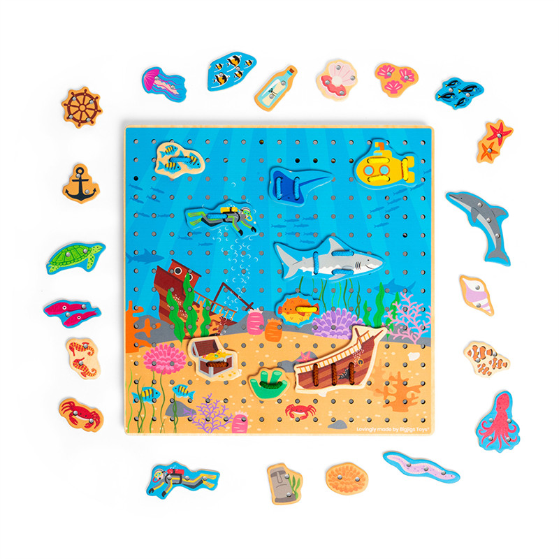 A Bigjigs Toys Fűzős tábla Tenger a kisgyermekek kreativitását és finommotoros készségeit fejleszti. A tenger alatti világ motívumai színes és vonzó megjelenést kölcsönöznek neki. A fából és tkaninából készült tábla tartós és biztonságos, így ideális a 3 éves és idősebb gyermekek számára. A 27,8x27,8x1,2 cm méretű játék könnyen kezelhető, és órákon át tartó szórakozást biztosít a kicsiknek.