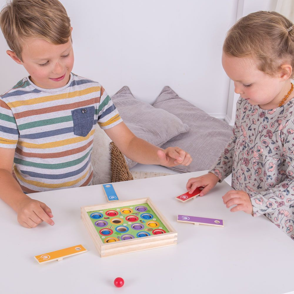A Bigjigs Toys - Kalap le! egy izgalmas és szórakoztató fa társasjáték, amely a stratégiai gondolkodást és a koordinációt fejleszti. A játék kompakt mérete (17,3 x 17,3 x 3 cm) ideálissá teszi utazásokhoz és otthoni játékhoz egyaránt. Ajánlott 3 éves kortól, kiváló minőségű fából készült, így tartós és biztonságos kisgyermekek számára is.
