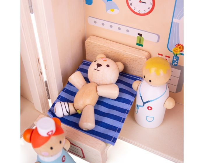 A Bigjigs Toys Mackó kórház egy varázslatos fa játékszett, amely a 3 évesnél idősebb gyermekek számára készült. Ez a 19x17x19 cm-es méretű készlet ideális a képzelet játékos kibontakoztatására, miközben a kicsik megismerhetik az orvosi világ alapjait. A tartós, minőségi faanyag biztosítja a hosszú távú használatot.
