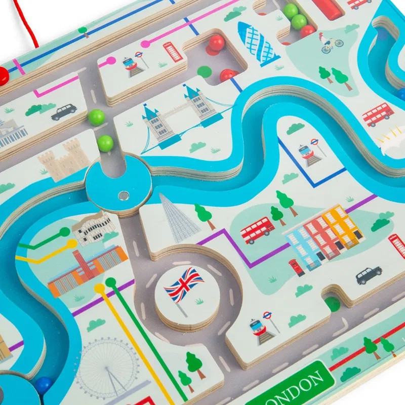 Fedezze fel London varázslatos világát a Bigjigs Toys mágneses labirintusával. Ez a fejlesztő játék tökéletes a finommotorikus készségek fejlesztésére, miközben a gyerekek felfedezik a híres londoni látványosságokat. A labirintusban egy mágneses ceruza segítségével vezethetik végig a golyókat, ami izgalmas kihívásokat és órákig tartó szórakozást biztosít.