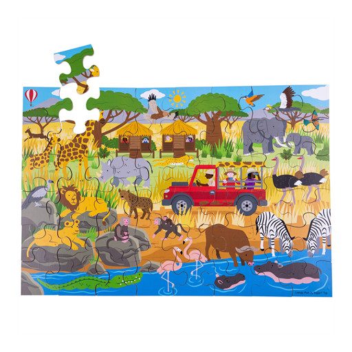 Fedezze fel az afrikai szavanna csodálatos világát a Bigjigs Toys Padlópuzzle segítségével! Ez a 48 darabos puzzle ideális választás 3 éves kortól, és tartós, minőségi fából készült. A 58x40 cm-es méretű puzzle elég nagy ahhoz, hogy a gyerekek fantáziáját megmozgassa, miközben kreatívan játszanak és tanulnak az afrikai vadonról.