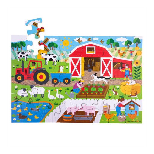Fedezze fel a vidéki élet örömeit a Bigjigs Toys farm témájú padlópuzzléjával. Ez a 48 darabos puzzle nemcsak szórakoztató kihívást jelent a gyerekeknek, hanem segíti a kézügyesség és a problémamegoldó képességek fejlesztését is. Az élénk színek és a részletgazdag illusztrációk magával ragadják a gyerekek fantáziáját, miközben a termetes darabok könnyen kezelhetők a kis kezek számára.
