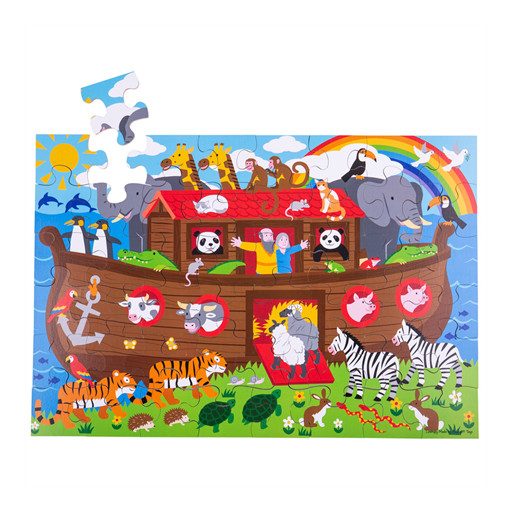 A Bigjigs Toys Padlópuzzle "Noé bárkája" egy lenyűgöző, 48 darabos kirakós, amely különleges élményt nyújt a kicsiknek. A színes és részletgazdag dizájn nemcsak szórakoztató, de oktató jellegű is, hiszen a gyerekek megismerkedhetnek Noé történetével. Ez a klasszikus fa puzzle kiváló minőségű anyagokból készült, biztosítva a hosszú élettartamot és a biztonságos játékot. A 58x40 cm-es méret ideális a padlón való játékhoz, míg a 3 éves és annál idősebb gyermekek számára tervezett kirakós segíti a finommotoros készségek fejlődését.