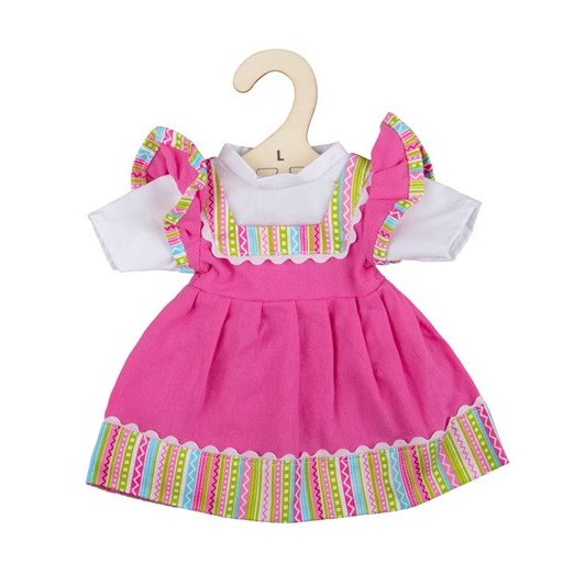 Ez a gyönyörű rózsaszín ruha csíkos szegéllyel tökéletes kiegészítője bármely 38 cm-es babának. Kiváló minőségű anyagokból készült, hogy tartós és biztonságos legyen a 2 évesnél idősebb gyermekek számára. A divatos dizájn és a könnyen kezelhető kialakítás biztosítja, hogy a kicsik örömmel öltöztessék fel kedvenc babájukat újra és újra.