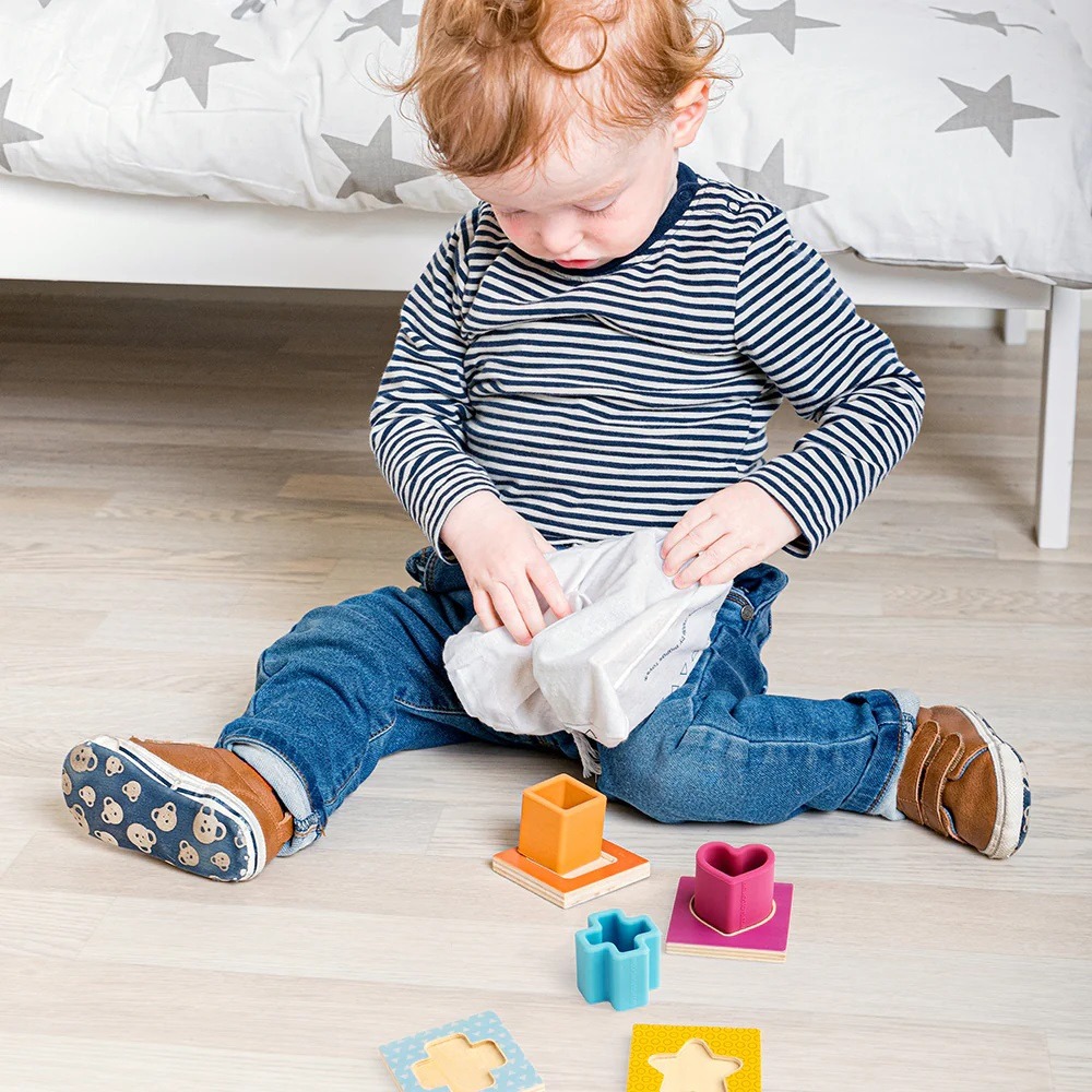 A Bigjigs Toys "Tapints és találj!" egy szórakoztató fejlesztő játék a legkisebbek számára, amely segít a tapintási érzék és a finommotorikus képességek fejlesztésében. A 9 db-os készlet FSC® tanúsítvánnyal rendelkező fából és szilikonból készült, biztosítva a környezetbarát játékélményt. A játék mérete 6x4,2x6 cm, és már 1 éves kortól ajánlott.