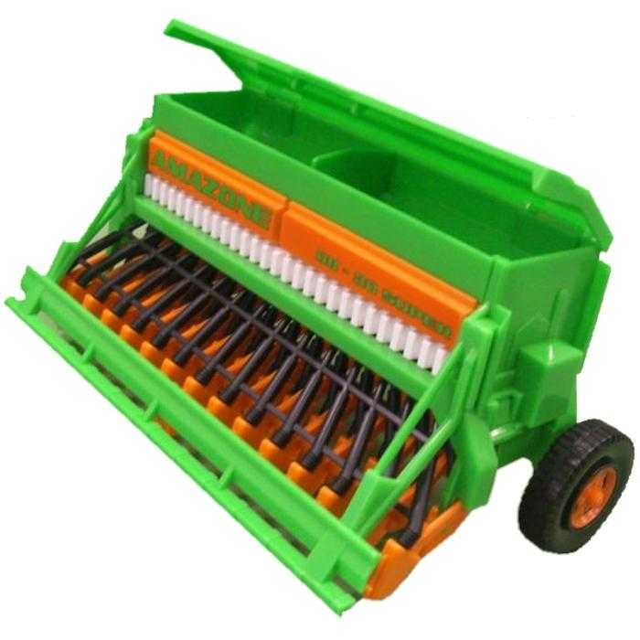 Az AMAZONE vetőgép gabonavetéshez készült, és a BRUDER 20xx, 21xx, 30xx sorozatú traktorok és gépek mögé csatlakoztatható. A fő elemek működőképesek, így remek kiegészítő a farmos játékokhoz.