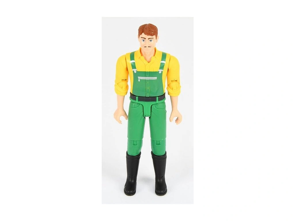 A Bruder BWORLD férfi farmer figura tökéletes kiegészítője minden Bruder farmos és munkagépes játéknak. A figura megjelenését John Deere, a Deere & Company alapítója inspirálta. Munkaruhában - sárga ingben és zöld nadrágban - érkezik, mozgatható végtagokkal és fejjel. Kezei képesek tárgyakat megfogni vagy járművet vezetni, így ideális szereplője a gazdasági munkáknak és mindennapi jeleneteknek.