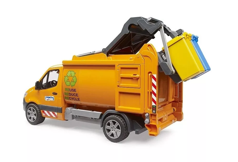 A Mercedes-Benz Sprinter kukásautó kompakt mérete miatt olyan helyekre is eljut, ahová a nagy kukásautók nem. A modell a valósághű működést imitálja: a kukák ürítésekor a tetőfedél automatikusan kinyílik, majd visszazár. Oldalt két rekesz található a szemeteszsákok és kisebb hulladékok számára.