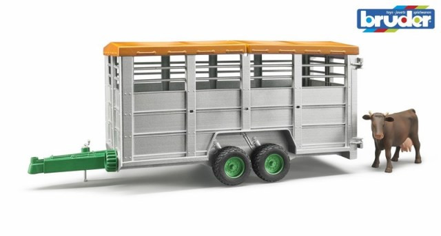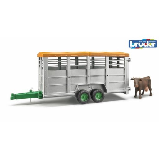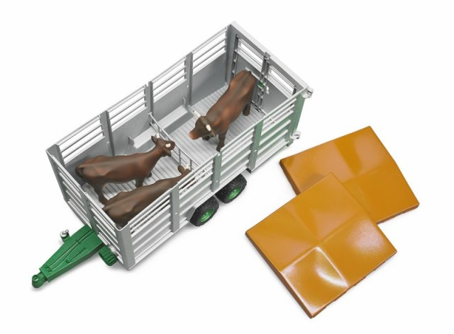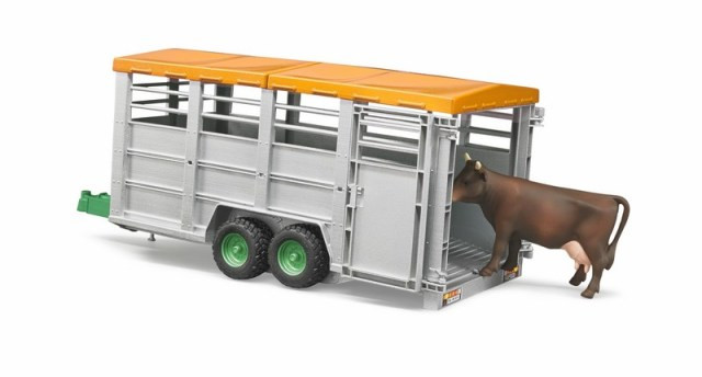 A Bruder állatszállító pótkocsi tehénfigurával (2016-os újdonság) remek kiegészítő a farmos játékokhoz. Az állatok a nyitható hátsó ajtón keresztül kerülnek be, a pótkocsi teteje levehető, belül pedig bőven van hely a szállításhoz. A felső szellőzőnyílások gondoskodnak az élethű részletekről.