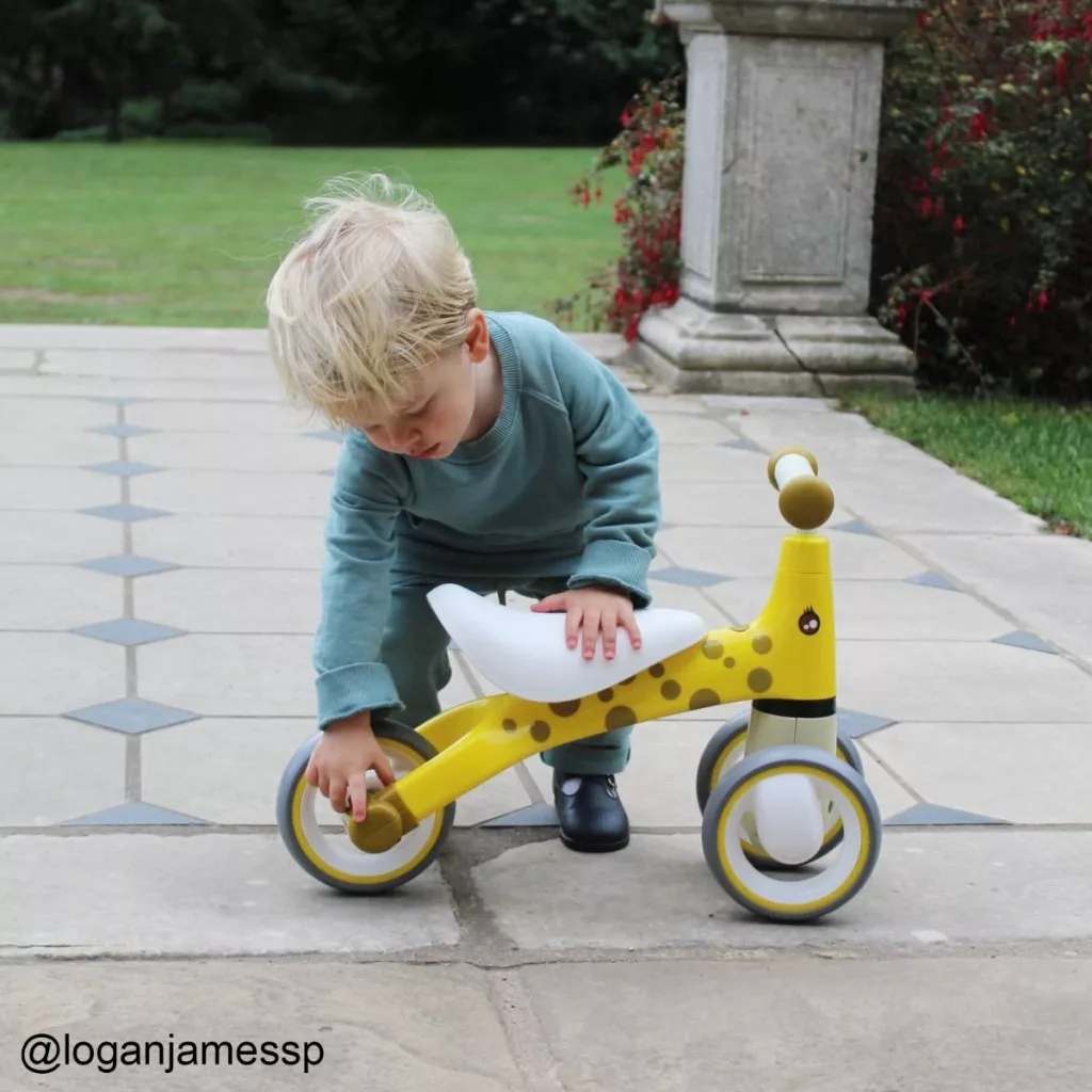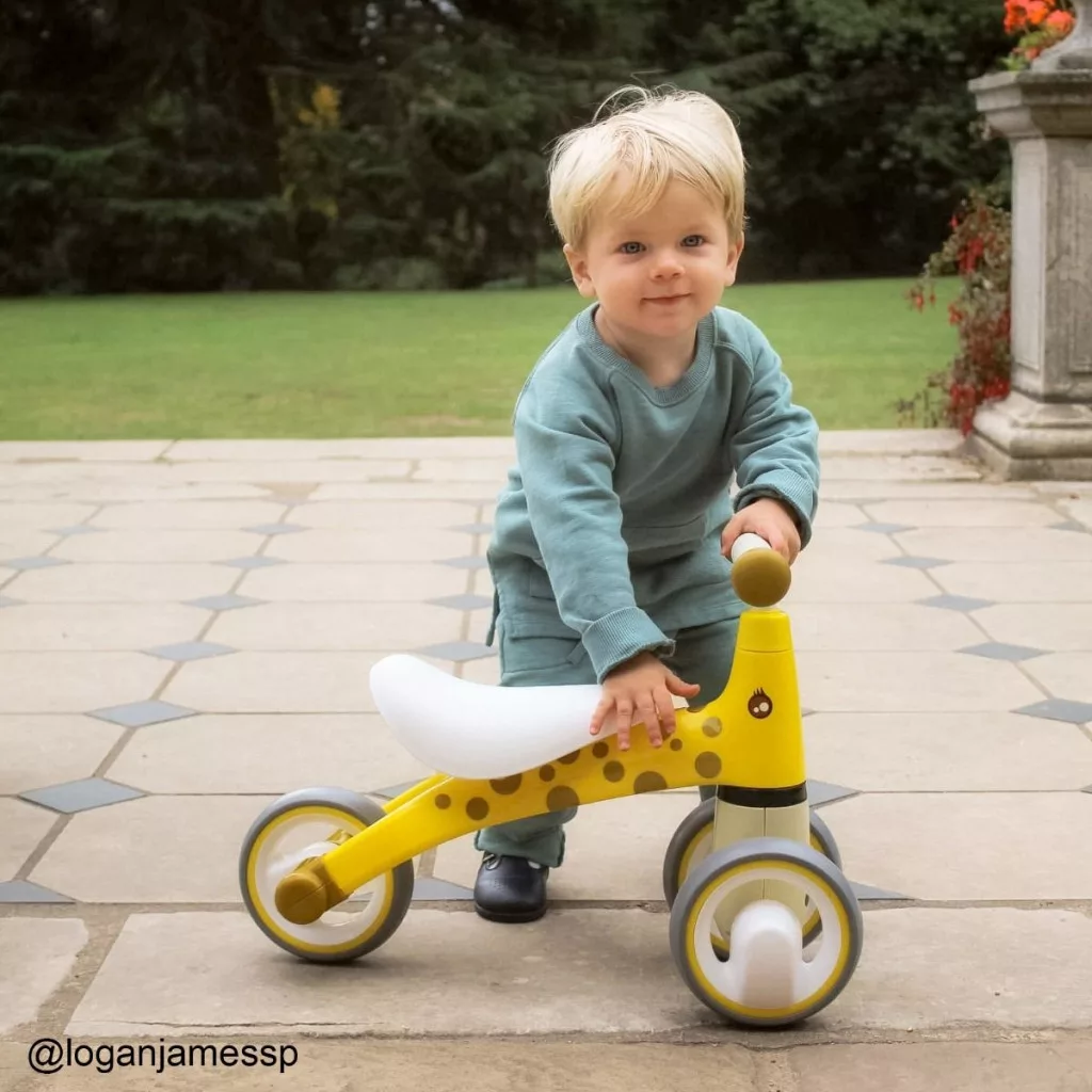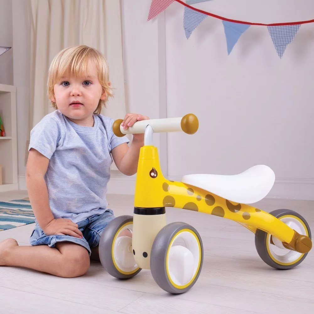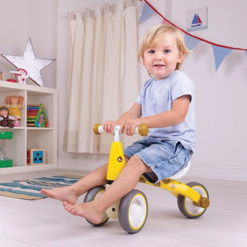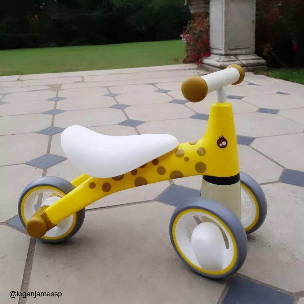 A zsiráf mintás Diditrike ugyanazokat az előnyöket kínálja, mint a zebra változat: biztonságos, stabil és ideális az első önálló mozgásos élményekhez.
