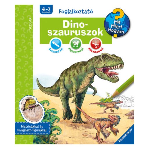 A Ravensburger Mit? Miért? Hogyan? Foglalkoztató sorozatának e kötete a dinoszauruszokkal ismerteti meg az apróságokat. Mik azok a dinoszauruszok? Mikor éltek? Mivel táplálkoztak? Hogyan védekeztek? Miért nincsenek már dinoszauruszok? Színezd ki!, Fejtsd meg! és Készítsd el! – a feladatokat megoldva a gyerekek megkapják a választ a kérdésekre, és azt is megtudják, hogyan lehet kövületeket készíteni.
