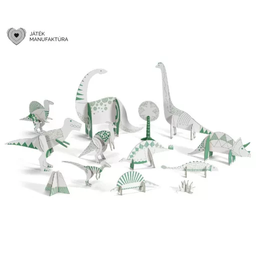 Gyermeked dínókat színezhet ki és állíthat össze ezzel a készlettel, amelyből lehet egy későbbi játék vagy dekoráció, esetleg egy kreatív projekt az iskolába vagy az óvódába.