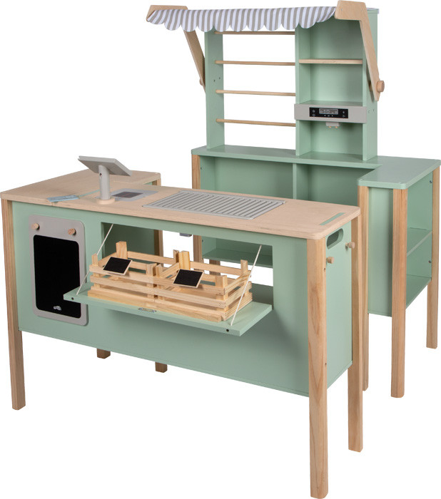 Drevený obchod a kuchynka Tasty zelená 2 v 1
