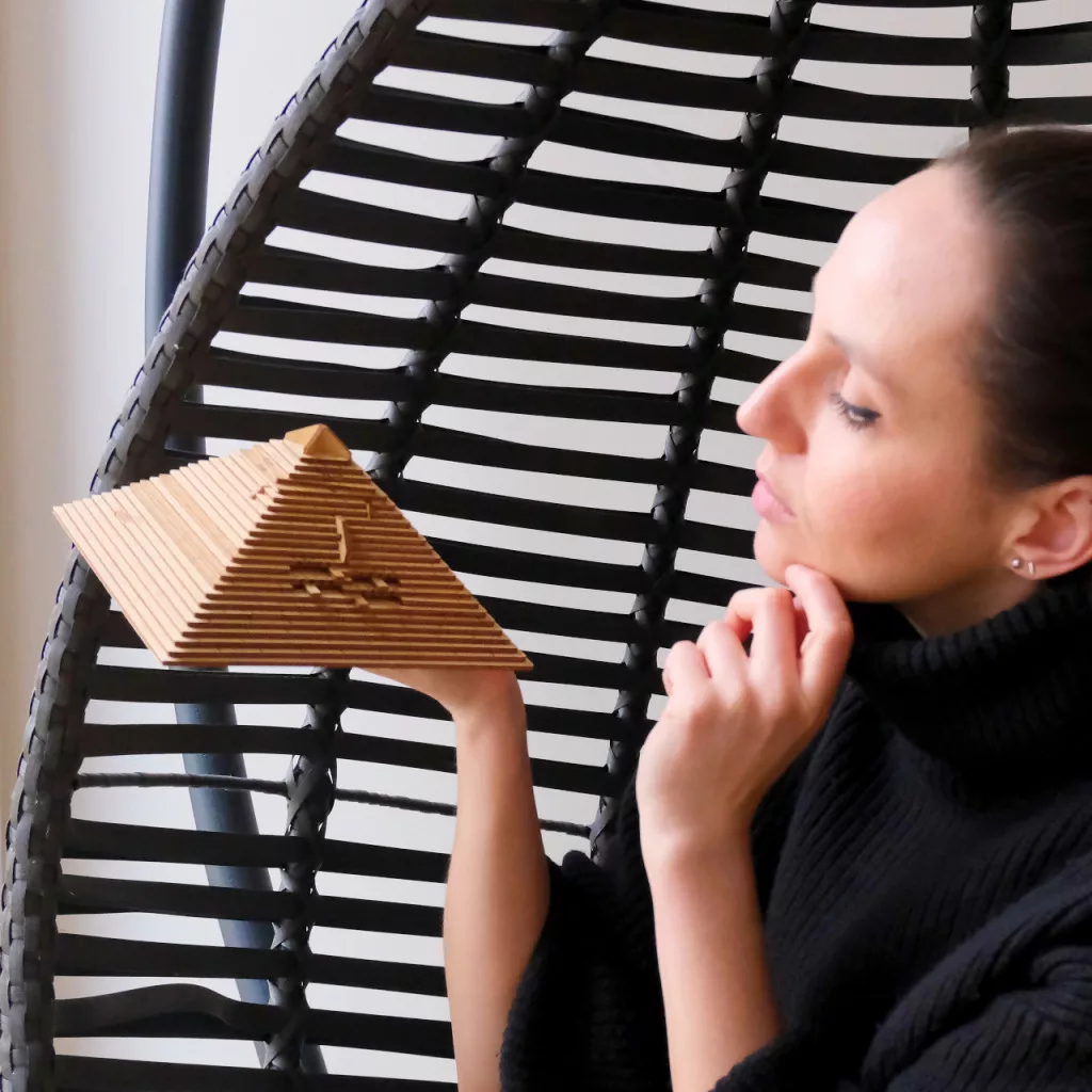 Ősi csapdák és modern fa mechanika találkozása: az egyiptomi Piramis feladványai a szimbólumok, pozíciók és reteszek összjátékát kérik számon. A cél a 5×5×5 cm-es kincskamra, amely üzenetnek vagy gyűrűnek is ideális. Az összeállítás egyszerű, a megfejtés viszont rafinált – kezdőknek belépő, haladóknak izgalmas agytorna. Ragasztó nélkül épül, tartós és letisztult formavilágú, így ajándéknak és dísztárgynak egyaránt tökéletes. Képes útmutatóval és QR-súgóval érkezik, újrajátszható. EU-ban gyártott, természetes faanyag.