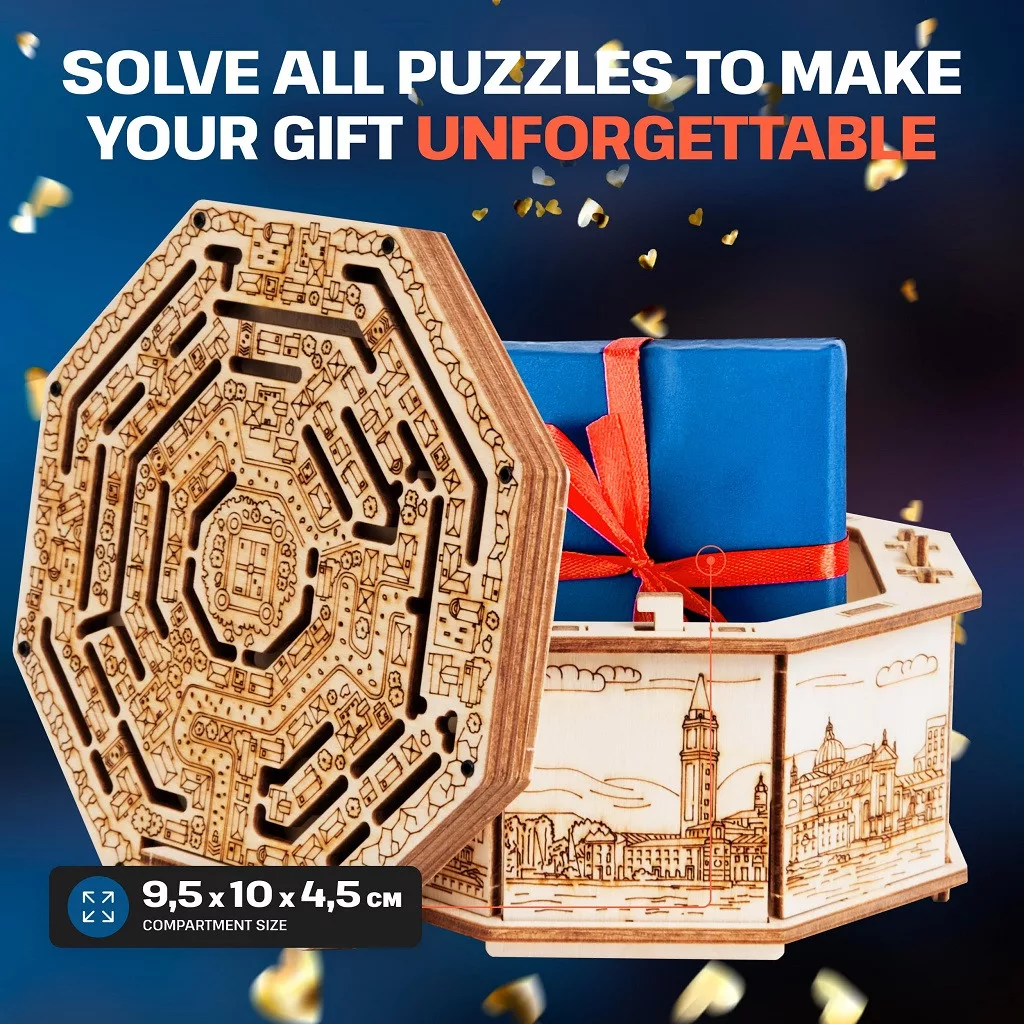• Ajándékdobozok: speciális kialakítású puzzle boxok, amelyekbe kisebb ajándék is rejthető – így a meglepetés még különlegesebb élményt nyújt.