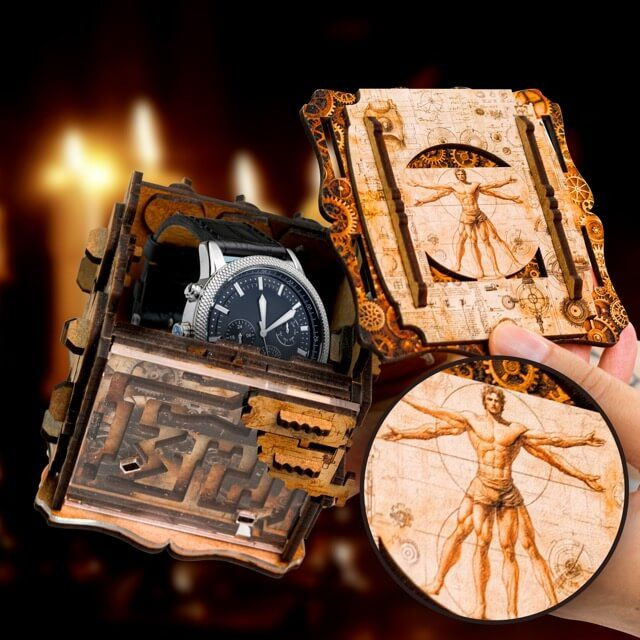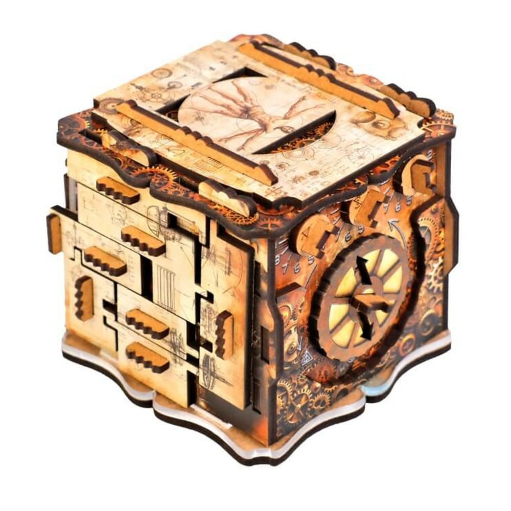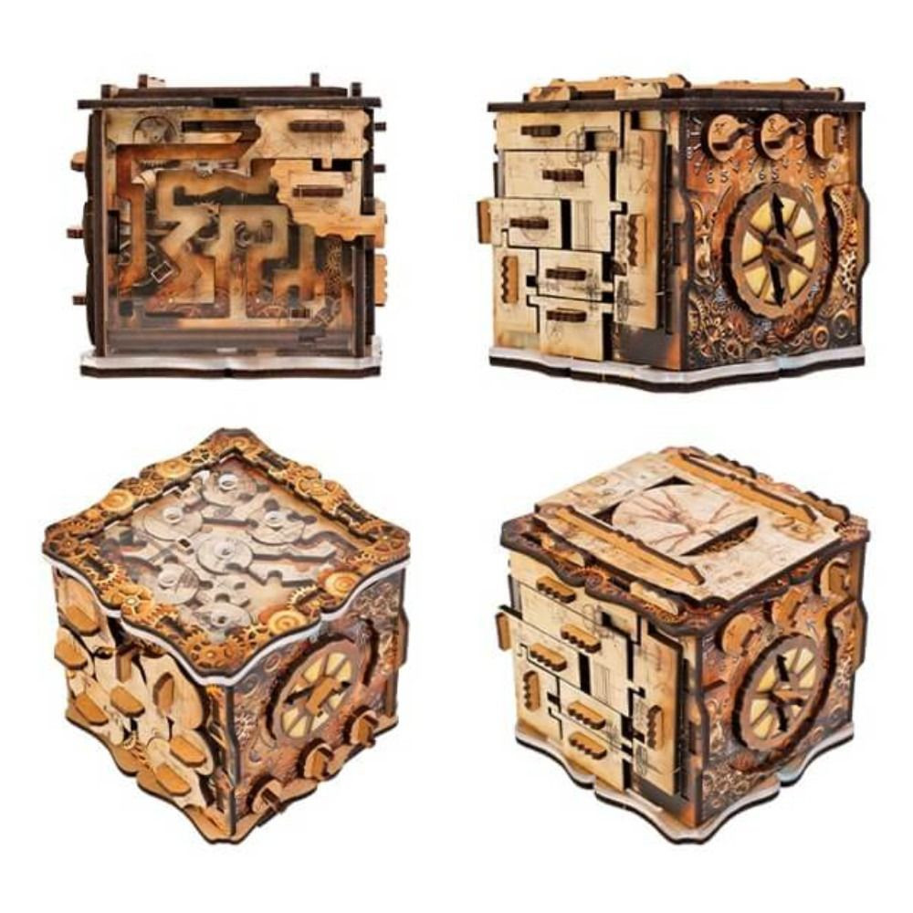 A több lépéses mechanikai feladvány megoldása után hozzáférsz a rejtett belső rekeszhez.