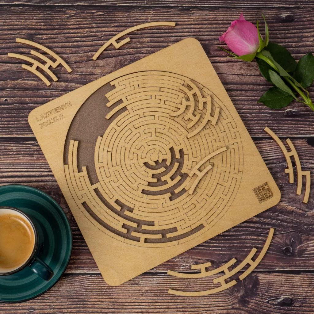 41 darabnyi precíz faelem, egy csavaros logikai útvonal és a türelem művészete – ez a Labirintus. A részek egymáshoz illesztése közben fokozatosan rajzolódik ki a helyes „járat”, így a kirakás nem puszta formaillesztés, hanem okos mintafelismerés. A minimalista dizájn miatt a kész mű szép dísztárgy, mégis minden milliméterében játék. Fejleszti a koncentrációt és a problémamegoldást, egyben remek „flow-élmény”. Strapabíró, lézervágott rétegelt lemezből, stabil kapcsolatokkal; újra és újra elővehető. Magas nehézség, EU-gyártás.