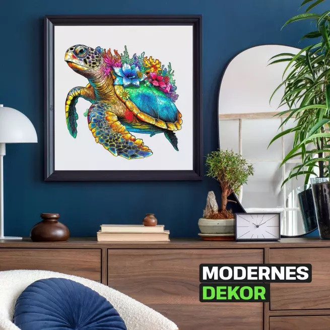 Mély merülés a részletekbe: 500 darabos, gazdagon textúrált teknős-kompozíció. A prémium, lézervágott faelemek „pattintós” pontossággal állnak össze, a színek élők és időtállók. A kirakás végén a mellékelt fóliával fixálható, majd a matricákkal könnyen falra helyezhető. Meditatív, hosszan tartó élmény természetkedvelőknek.