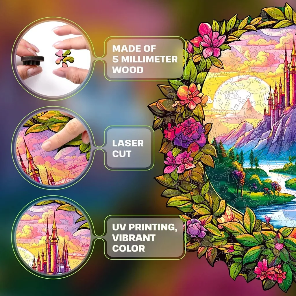 Mesés, fényfoltos erdei jelenet 200 darabbal – pont annyi, hogy kikapcsoljon, mégse legyen hosszú maraton. A fa darabok természetes tapintása, a sima, lézervágott élek és az UV-színek együtt adják a prémium élményt. A kész kép a mellékelt fóliával rögzíthető, a matricákkal pedig falra tehető. Ajándéknak is ideális mindenkinek, aki szereti a természetet és a varázslatos hangulatot.