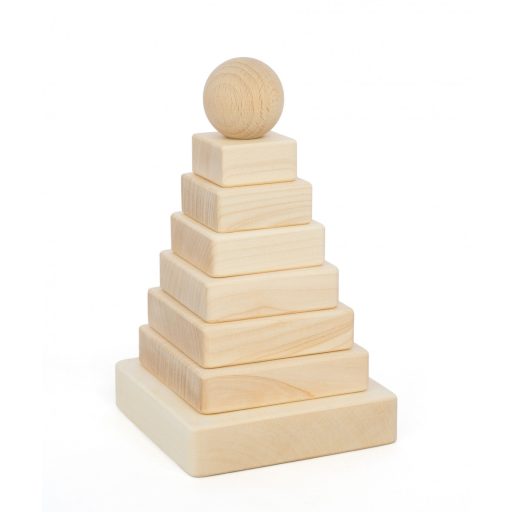 Toronyépítő készlet 8 natúr fa elemből áll.