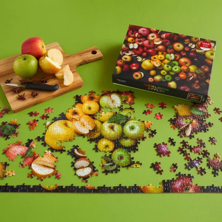 Ez az 1000 darabos puzzle frissen szedett almafajtákat mutat be, színek szerint rendezve. A harmonikus elrendezés és az őszi hangulat kellemes, nyugodt kirakást kínál, amely jóleső kikapcsolódást ad a mindennapokban.