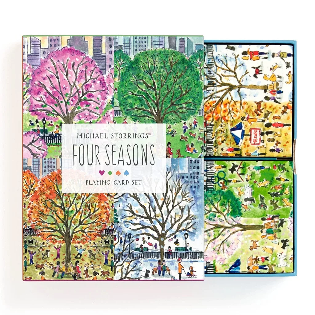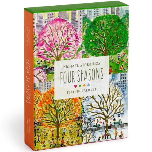 A Galison Négy évszak kártyapakli Michael Storrings részletgazdag illusztrációival hozza közelebb a városi tájak és évszakok hangulatát. Elegáns választás a kártyajátékok kedvelőinek, akik szeretik a szépen kidolgozott, különleges darabokat.