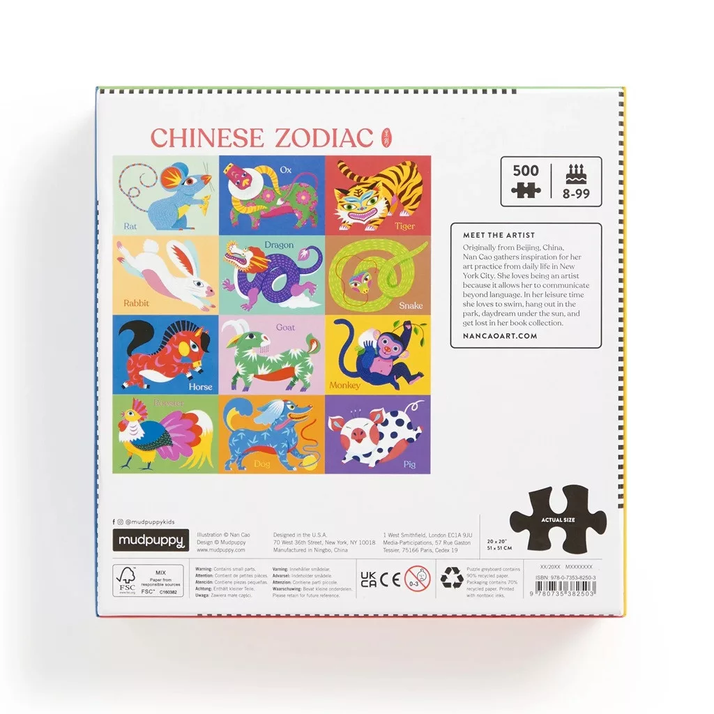 A Galison Kínai állatövi jegyek 500 darabos puzzle a kínai zodiákus 12 állatát mutatja be Nan Cao illusztrációján. Különleges választás, ha szereted a szimbolikus motívumokat, és jól esik egy nyugodt, elmélyült kikapcsolódás a mindennapok után.
