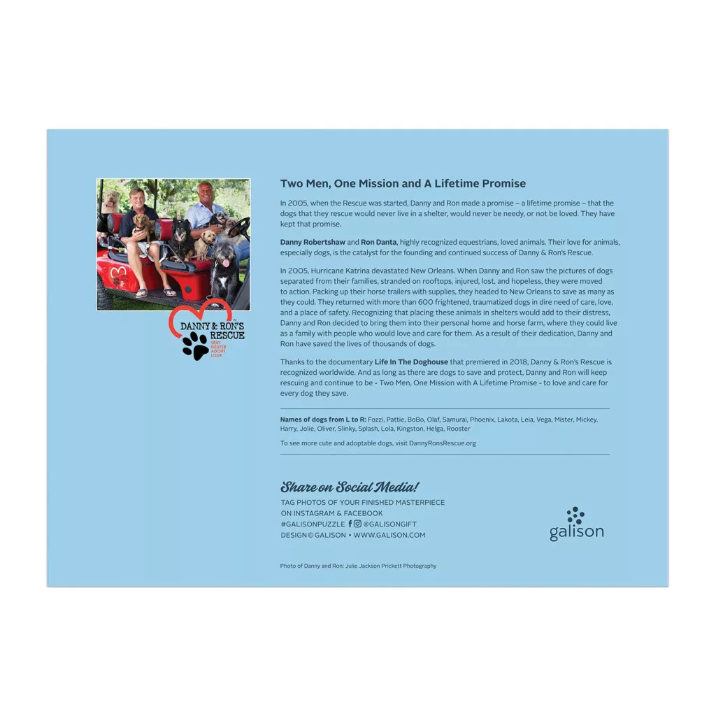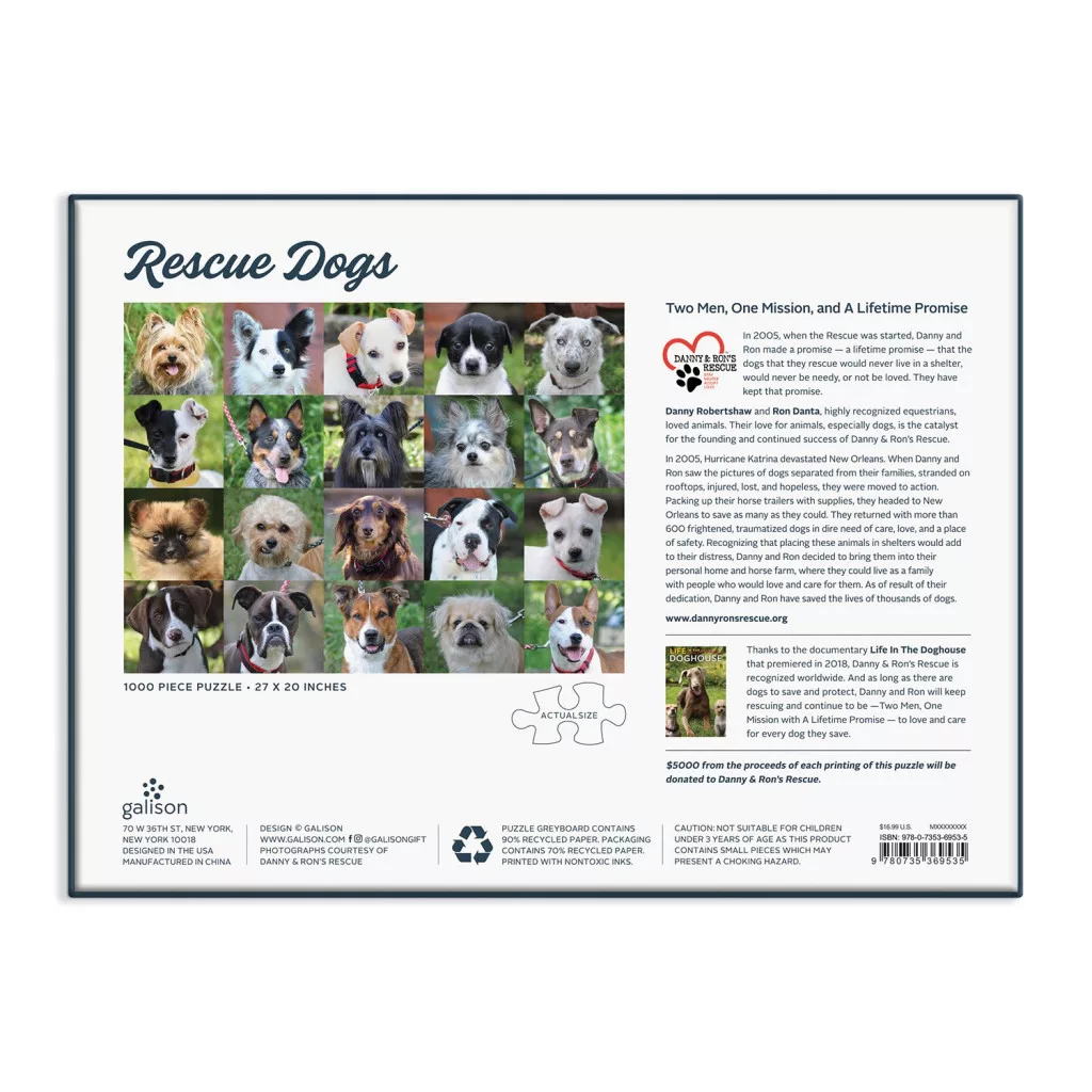 A Galison Menhelyi kutyák 1000 darabos puzzle 20 megmentett kutya képét mutatja be egy szerethető, inspiráló összeállításban. Különösen jó választás kutyabarátoknak, ha egy kedves, érzelmes témájú kirakóval szeretnének kikapcsolódni és örömteli énidőt tölteni.